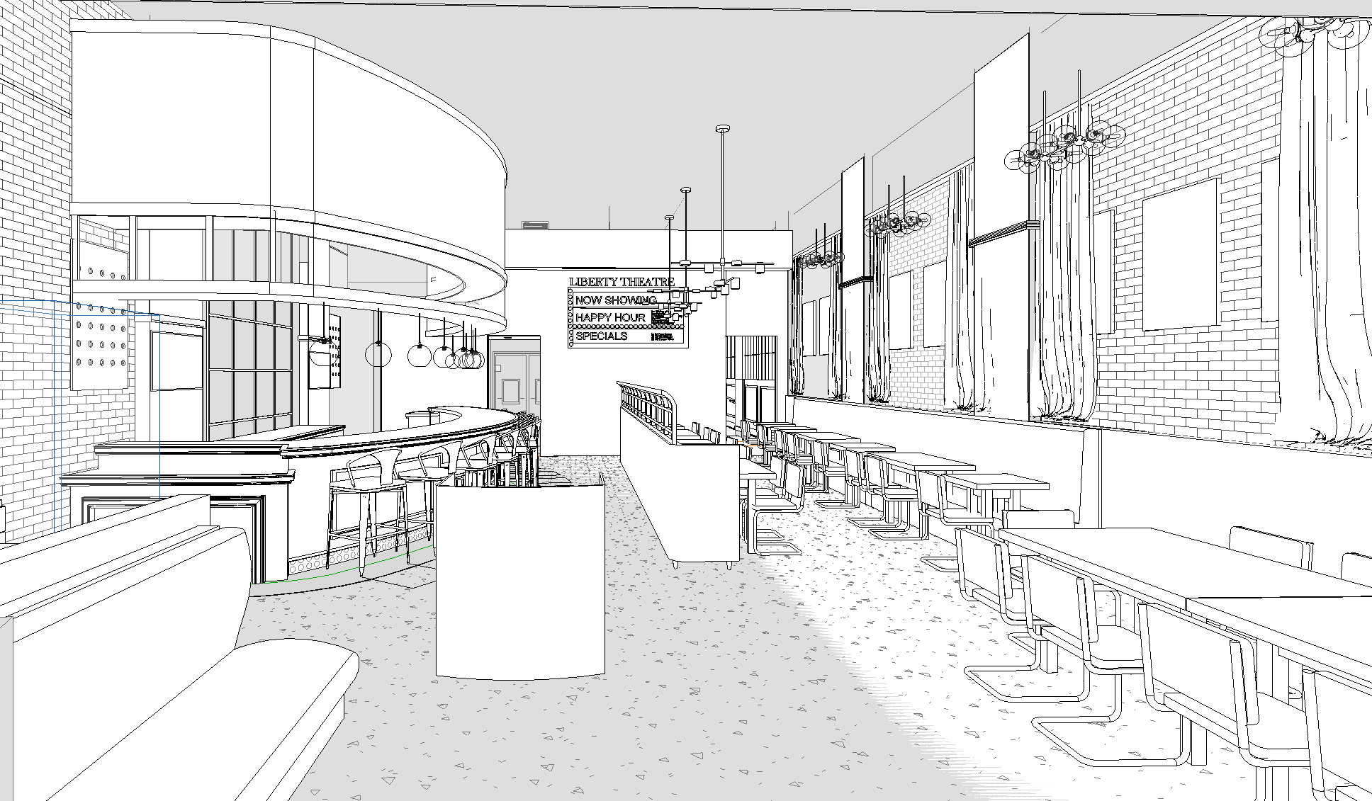 make this look realistic bistro style with dark wood on the bar and saddle color leather