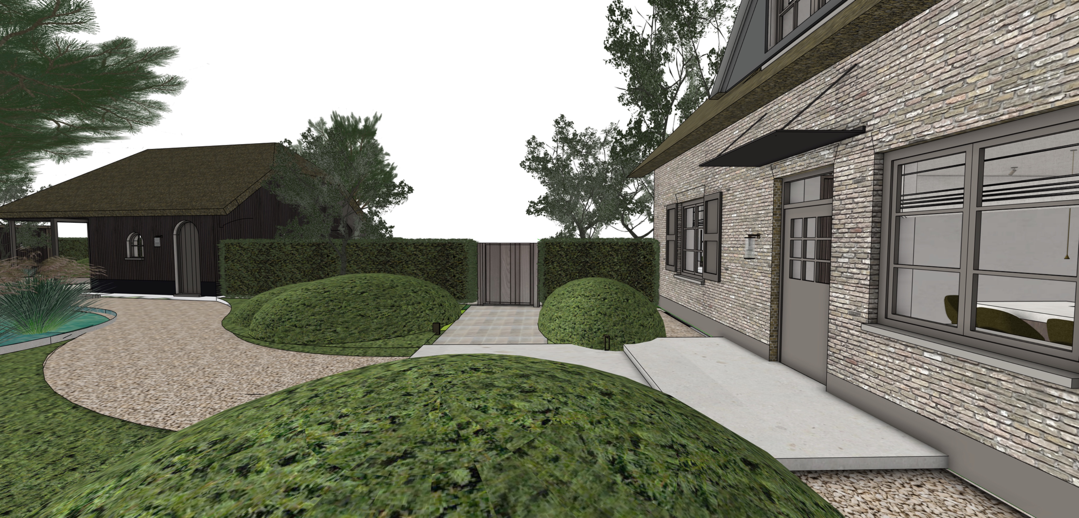 geef het kleine gebouw een donkere houten gevelbekleding in verticale houten delen