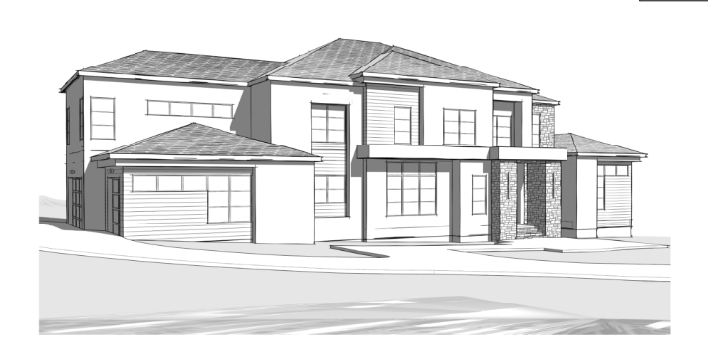 render this image as a high end photorealistic luxury home exterior critical instruction do not modify move resize or redesign any architectural elements do not change windows doors rooflines columns trim or proportions do not add or remove features maintain the exact structure layout and perspective of the original image only update materials colors textures and lighting design style luxury modern transitional with a warm refined high end aesthetic clean timeless and balanced no overly trendy or exaggerated features exterior finishes main body walls sherwin williams sw9586 white sesame warm off white tone smooth matte finish secondary accent walls sherwin williams sw9173 shiitake use selectively for depth and contrast trim fascia windows doors sherwin williams sw7020 black fox satin finish all trim and frames to match roofing shingles owens corning onyx black dimensional add realistic shadowing and depth stone brick if present keep existing material exactly as designed enhance with natural variation and warm undertones avoid flat or repetitive textures used https acrstonegroup com hewn stone arctic hewn stone arctic siding elements if present rich natural wood stain brazilian ipe medium dark walnut tone visible refined grain high end not rustic glass slight natural reflections sky trees clear high end appearance no mirror effect landscaping upscale clean minimal layered plantings boxwoods grasses low shrubs neutral palette greens soft whites do not overpower architecture hardscape light neutral pavers or brushed concrete warm gray taupe tones subtle texture no bold patterns lighting environment time of day warm late afternoon golden hour soft natural light with realistic shadows optional subtle exterior lighting glow sky soft blue or warm sunset render quality photorealistic not stylized high resolution 4k accurate material textures no stretching repeating realistic depth shadows and reflections inal check mandatory ensure architecture is completely unchanged colors match specified finishes exactly materials appear natural and high end overall look reflects a 2m custom home style reference match the quality and feel of luxury builder marketing ar homes level rendering quality