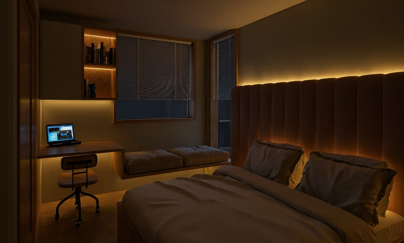modern exterior shot render the exterior of this house with modern materials use white stucco walls light wood accents black metal door and window framing and large glass openings add a sleek swimming pool in the backyard with concrete decking and minimal landscaping a few tropical plants and ambient lighting for a luxurious organic modern vibe architecture
