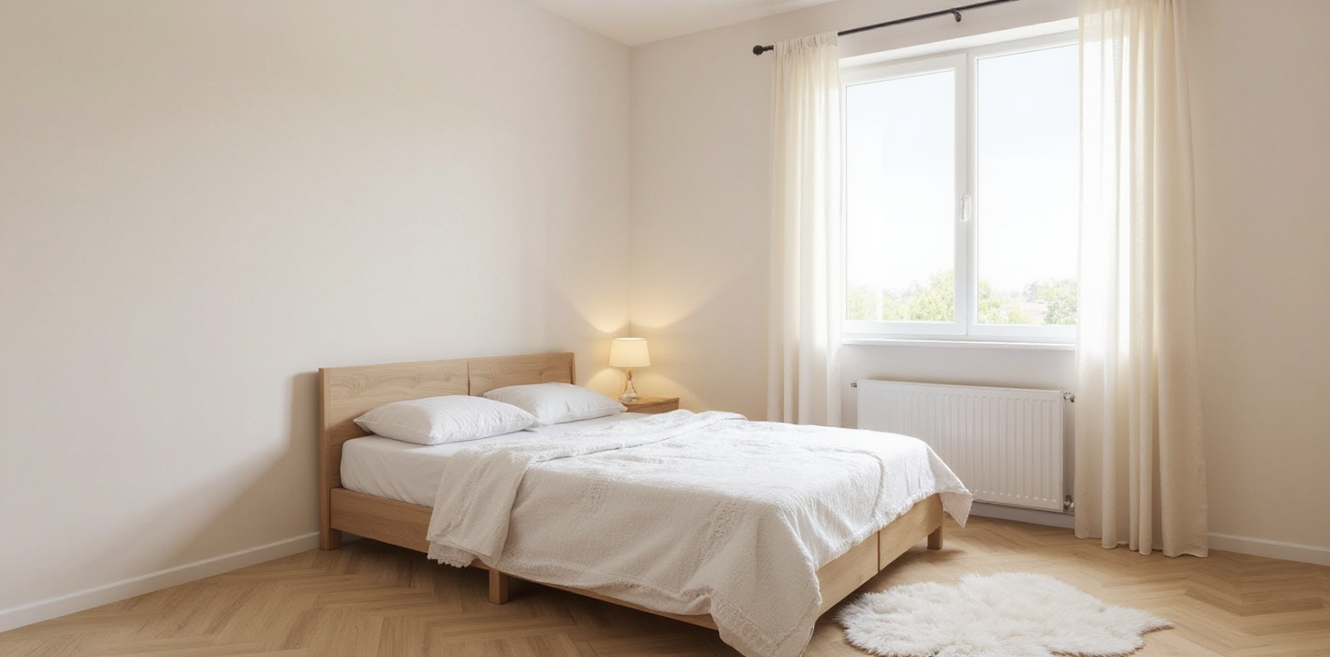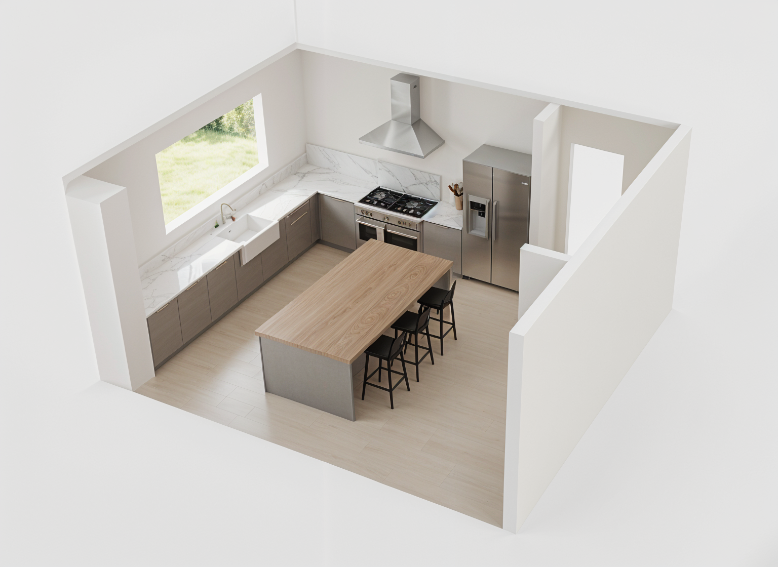 make the lighting more natural add artwork on the wall add a chandelier and remove the black image that is stuck in the photo on the left