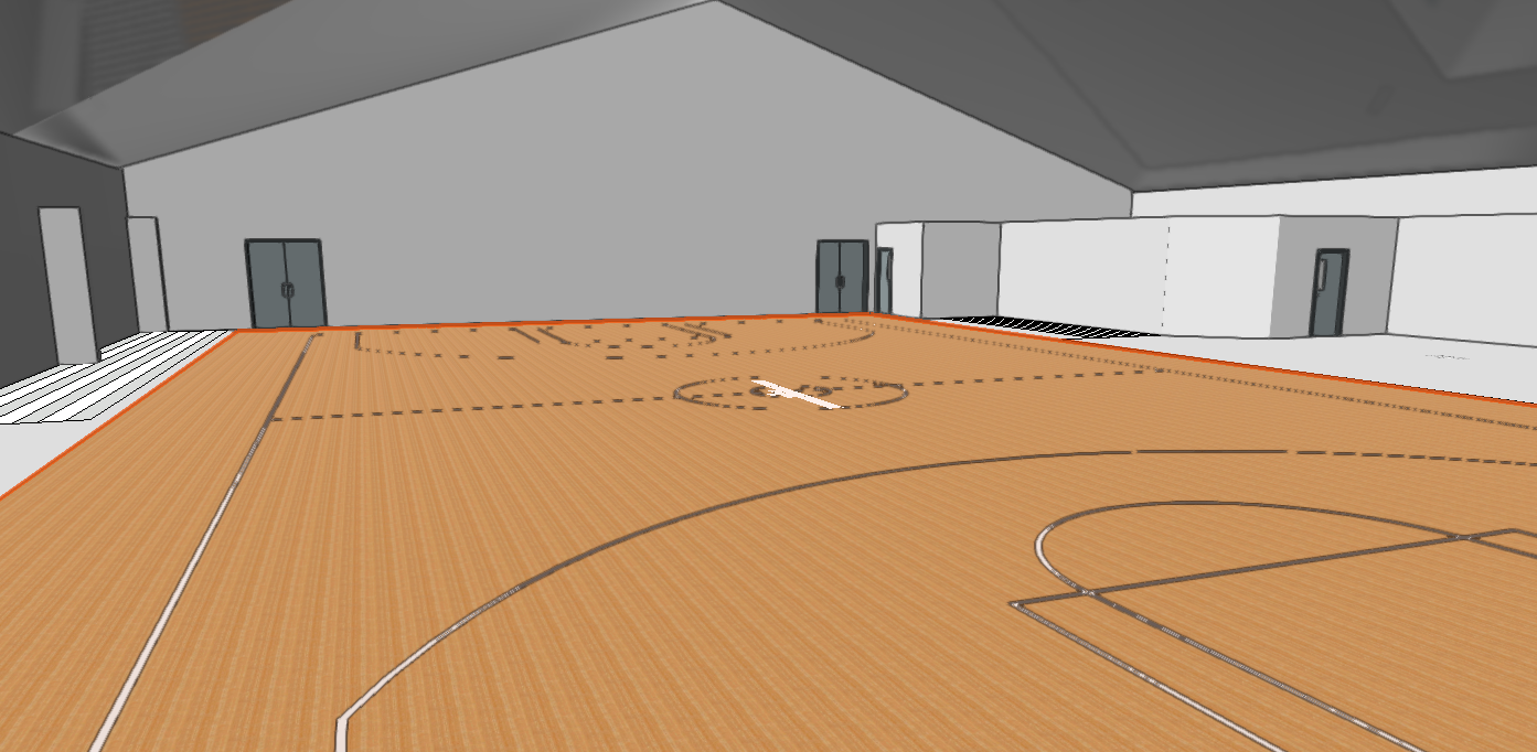 modernist interior shot open gym area with bleachers add lighting and basketball hoop architecture