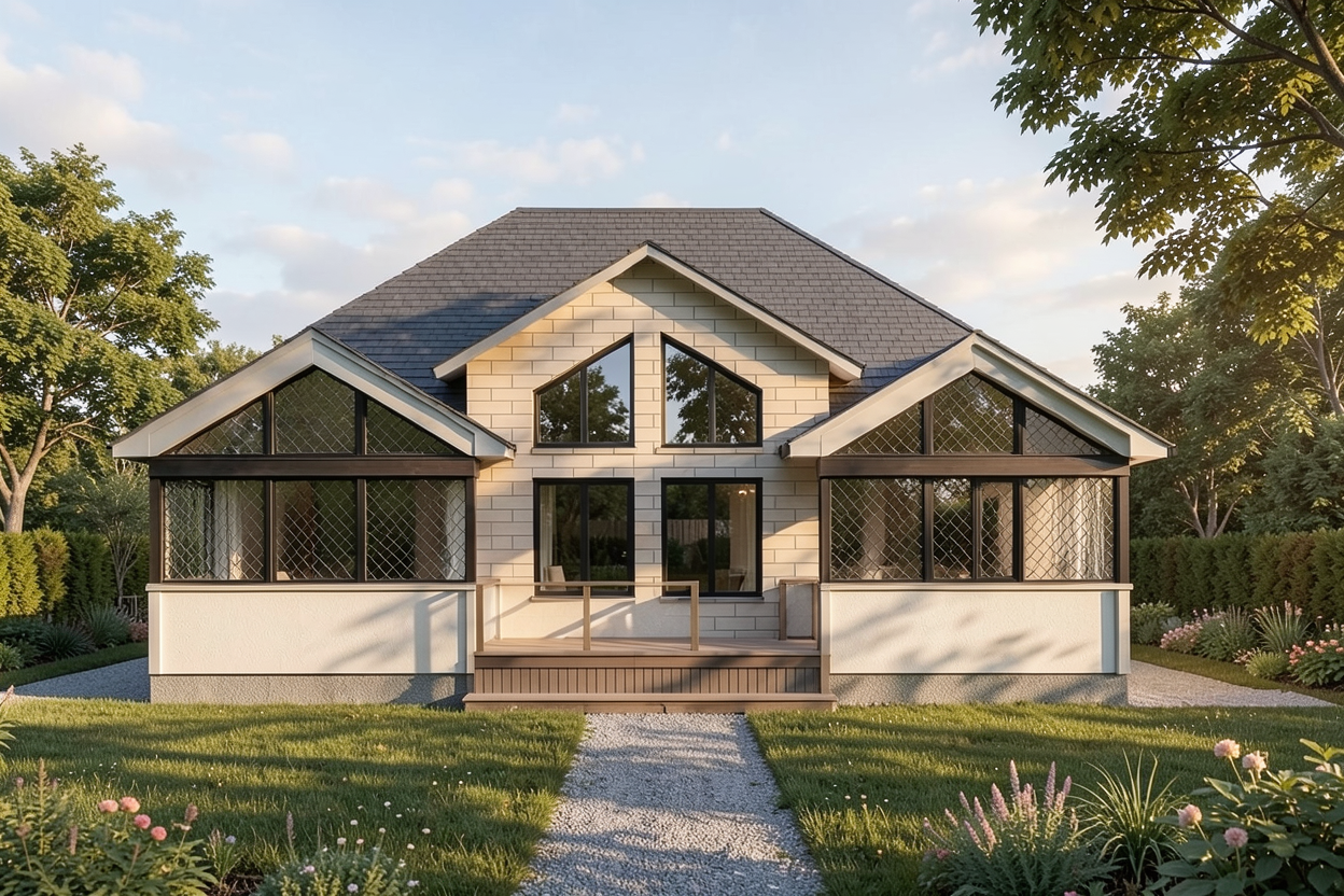 do not add plants and greenery show the garage structure and patio i will edit the rest