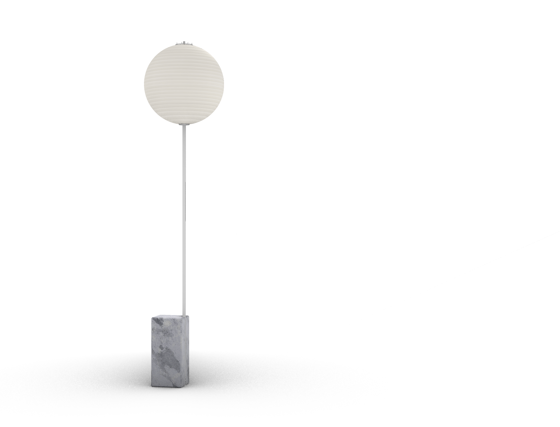 floor lamp with marble base thin rectangular stainless steel post and paper akari light dark wooden interior wall and dark concrete floor black leather modern minimalist couch on the floor nothing else veriy minimalist wabi sabi atmosphere