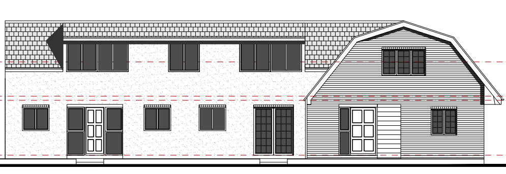 use a weathered yellow brick for the gable end and white render for the rest of the facing material fascias should be wooden add trees to the background sun is top right show a driveway and car instead of grass to front there should be horizontal timber panelling next to the front door