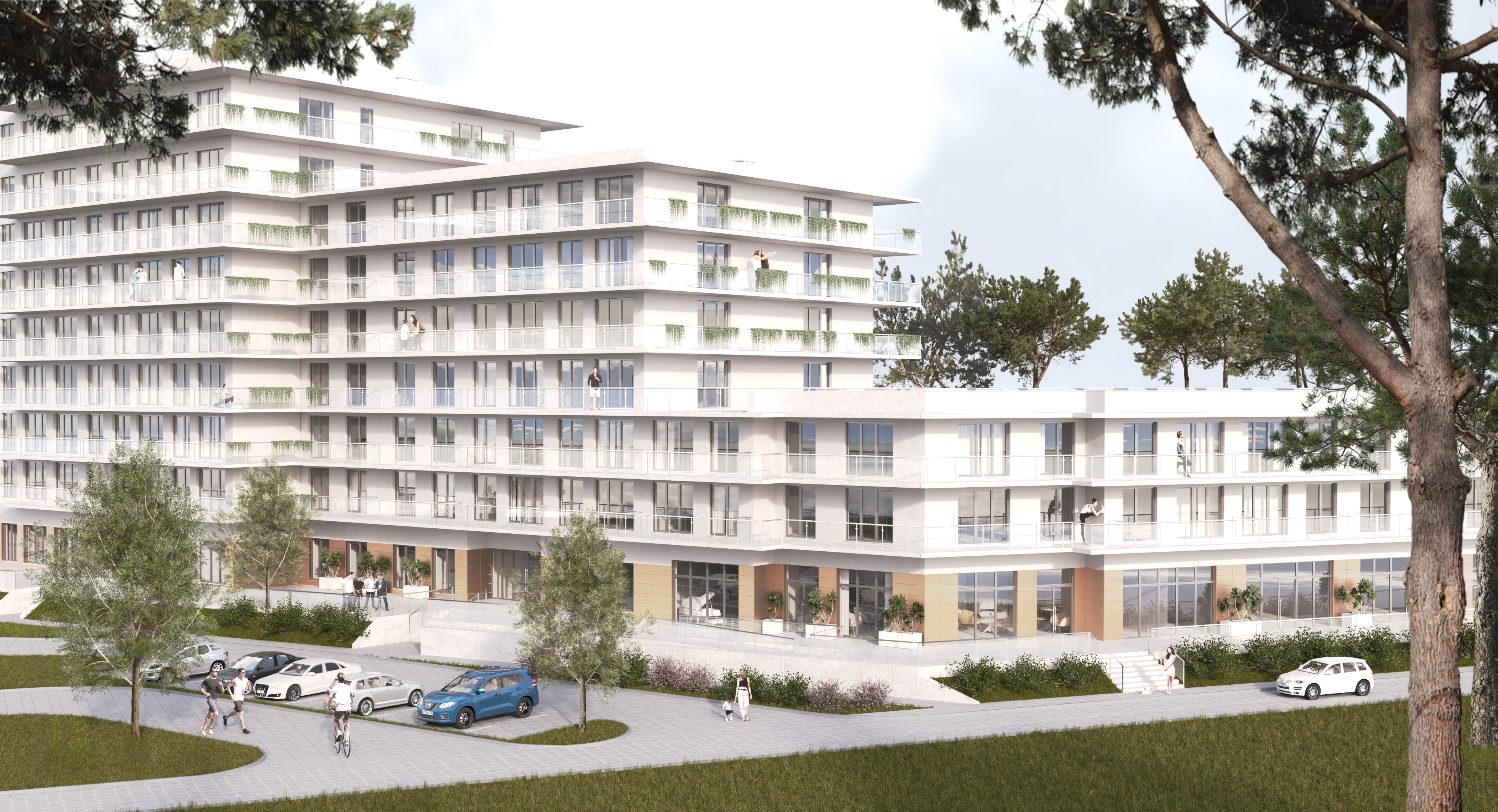 improve photorealism change only lightening to sunny daylight but colors of the elevations should be visible