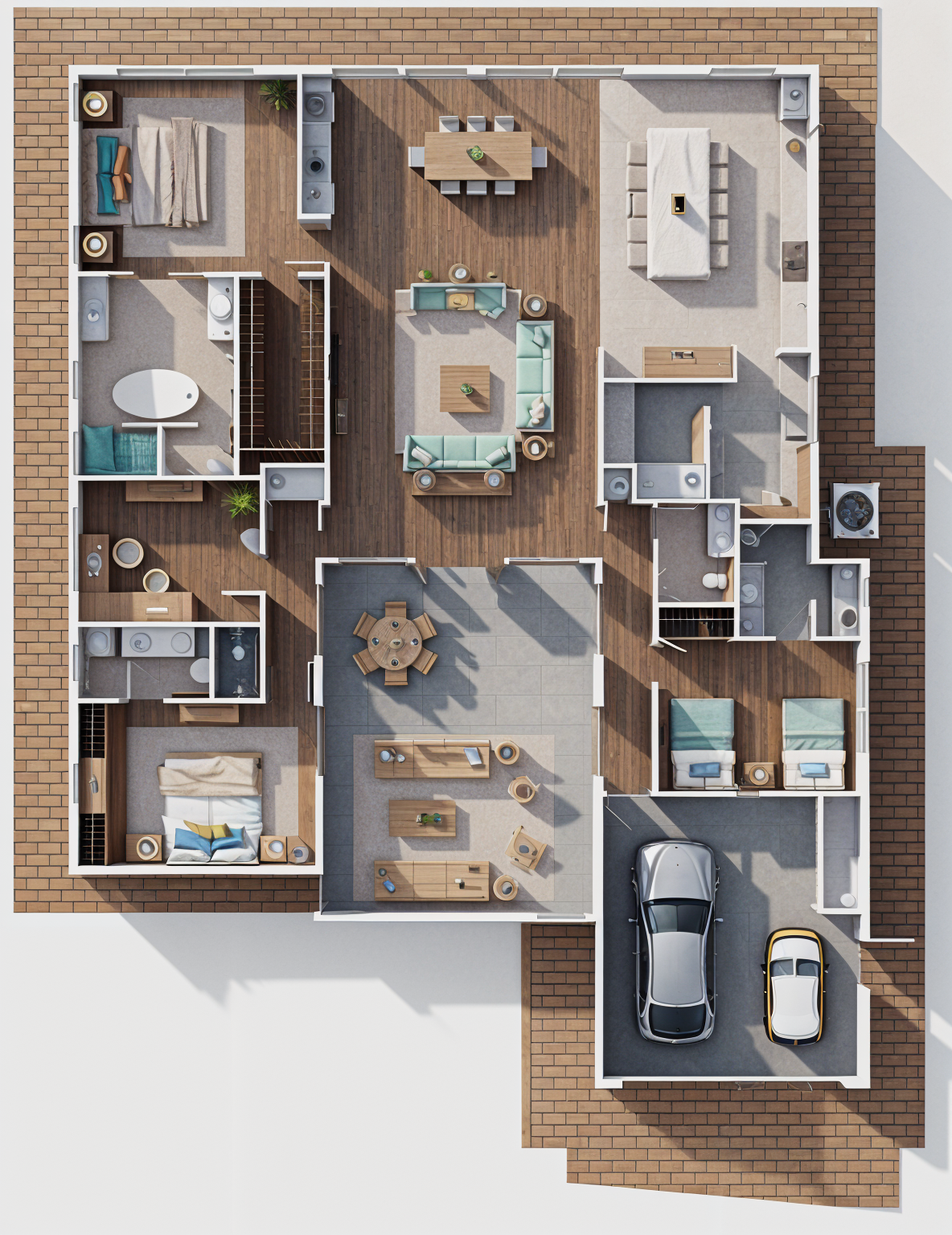 make a front elevation photorealistic as possible while keeping textures the same as shown lightly landscaped in a lightly wooded suburb of beaver falls pa nice lighting remove any text use the following finishes fafbf6 board and batten fafbf6 straight edge vinyl shakes fafbf6 trim black certainteed dimensional shingles 4a3b14 metal roof 3f403e 6 lite glass one panel front door faf7f0 posts and rails unfinished pine horizontal slats and white stucco posts at lower level driveway to right of house