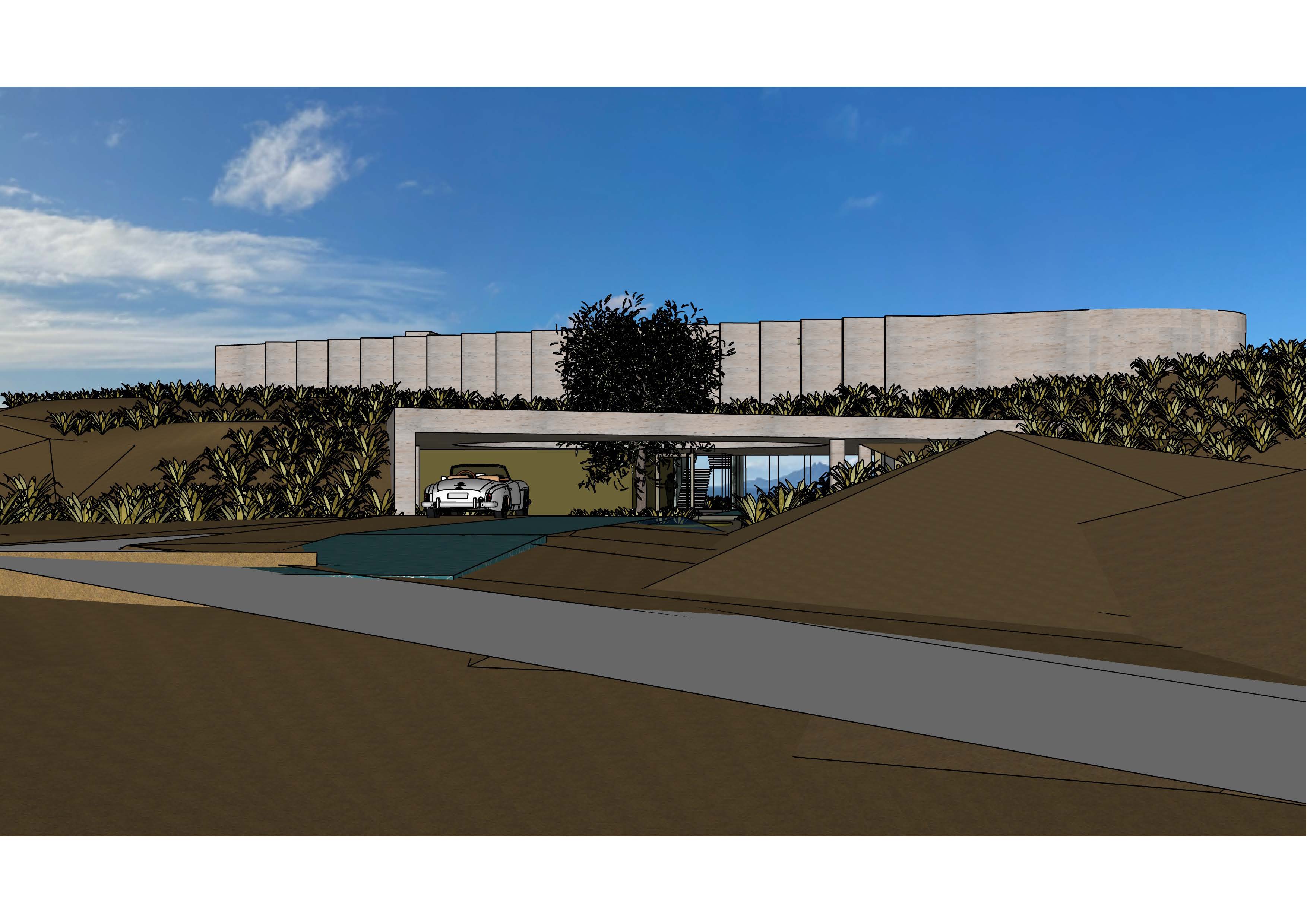exterior shot new zealand beach side high end residential tussock planting travertine cladding architecture