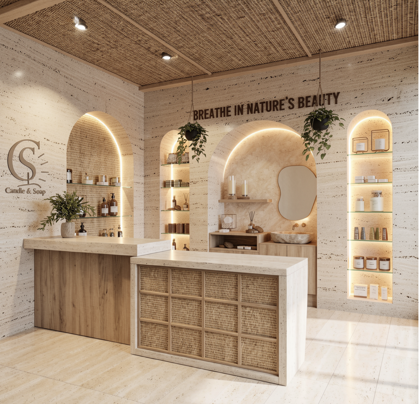 make the back of the shelving alcoves clear glass windows
