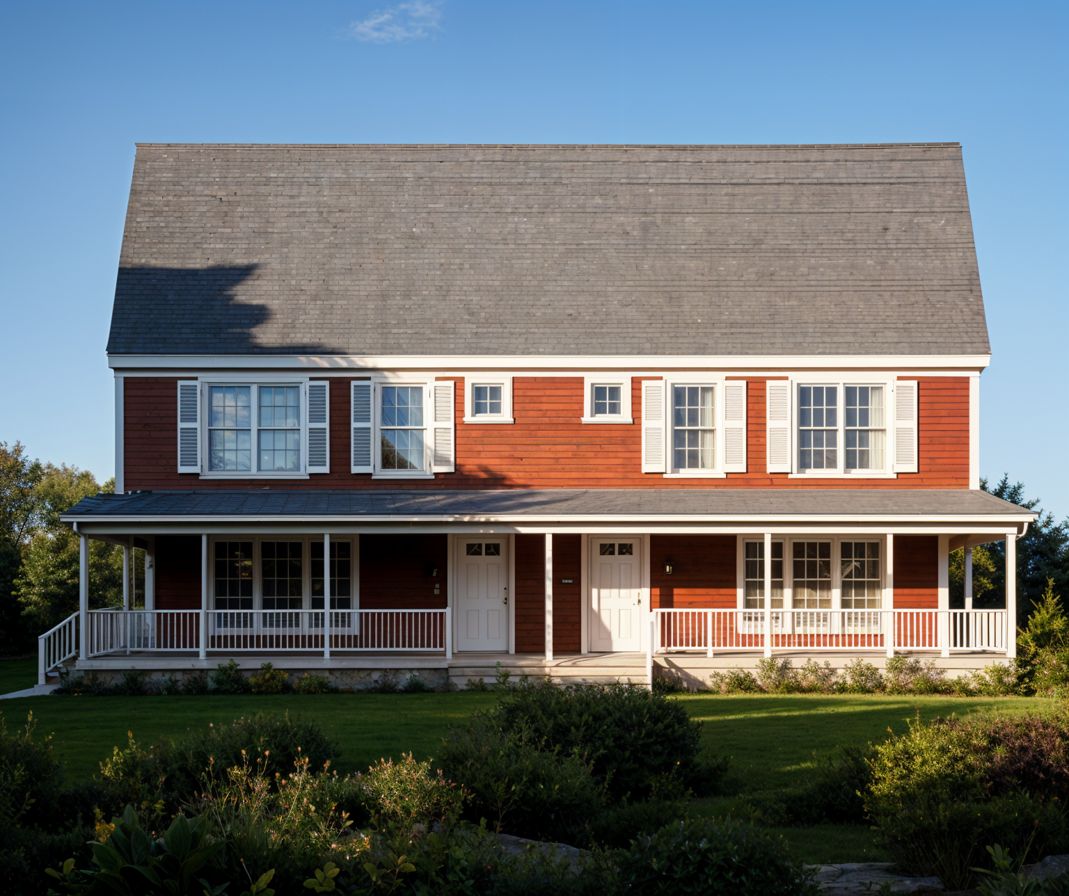 convert to photo realistic rendering rough white plaster walls with buildings and oak trees in the background and sunny california weather