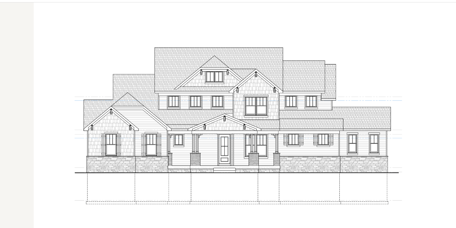 create a lifelike photo based on the architectural blueprint do not change anything structurally make the siding a cream color with black windows and trim and black gutters garage and porch columns in white stone on the waterline and porch columns a mix of cream and tan cobblestone add landscaping green grass and trees