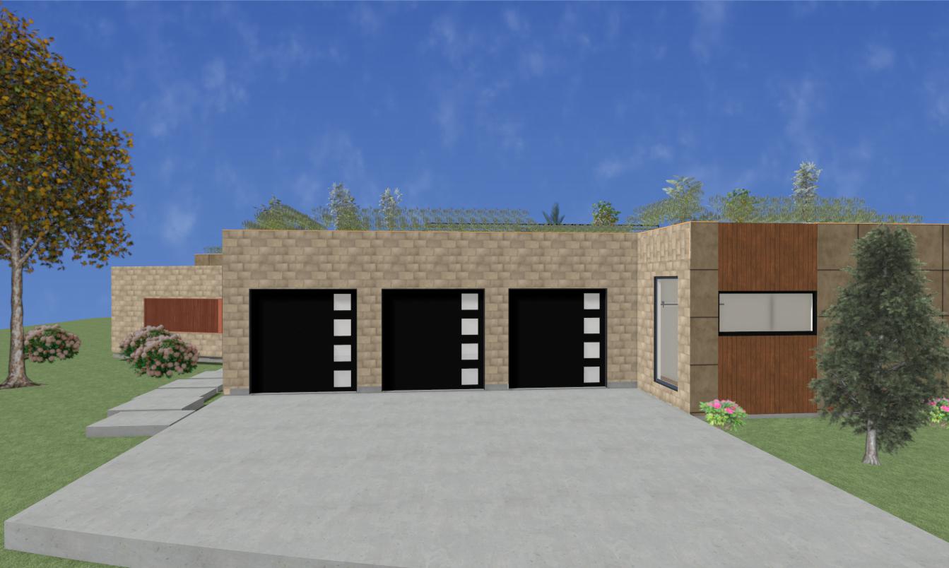 sunset lighting the sky is vibrant place shrubs in garden beds around the outside of the home make the concrete driveway stamped concrete