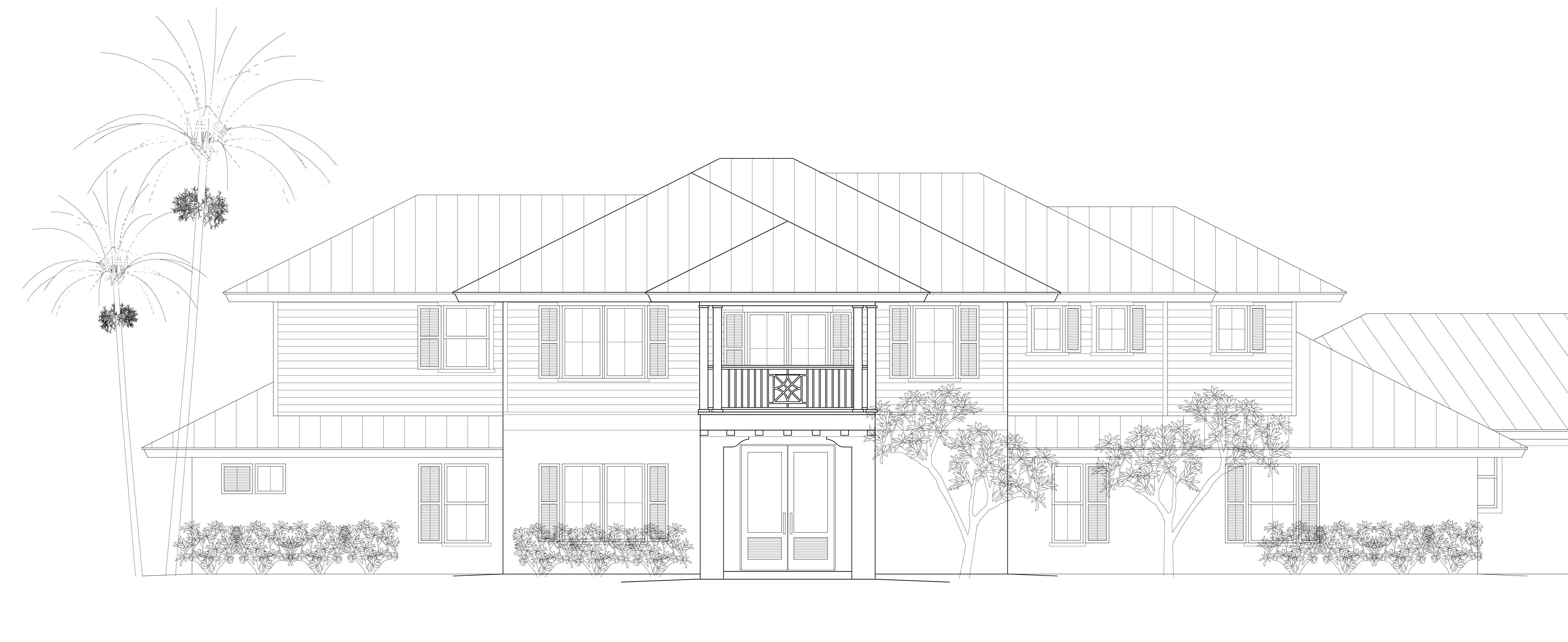 photo realistic west indies residence metal roof white windows light blue accents lush tropical florida landscape