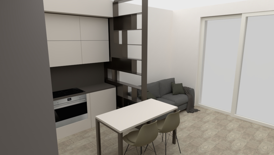 le sedie sono beige scuro e i cuscini azzurri chiari
