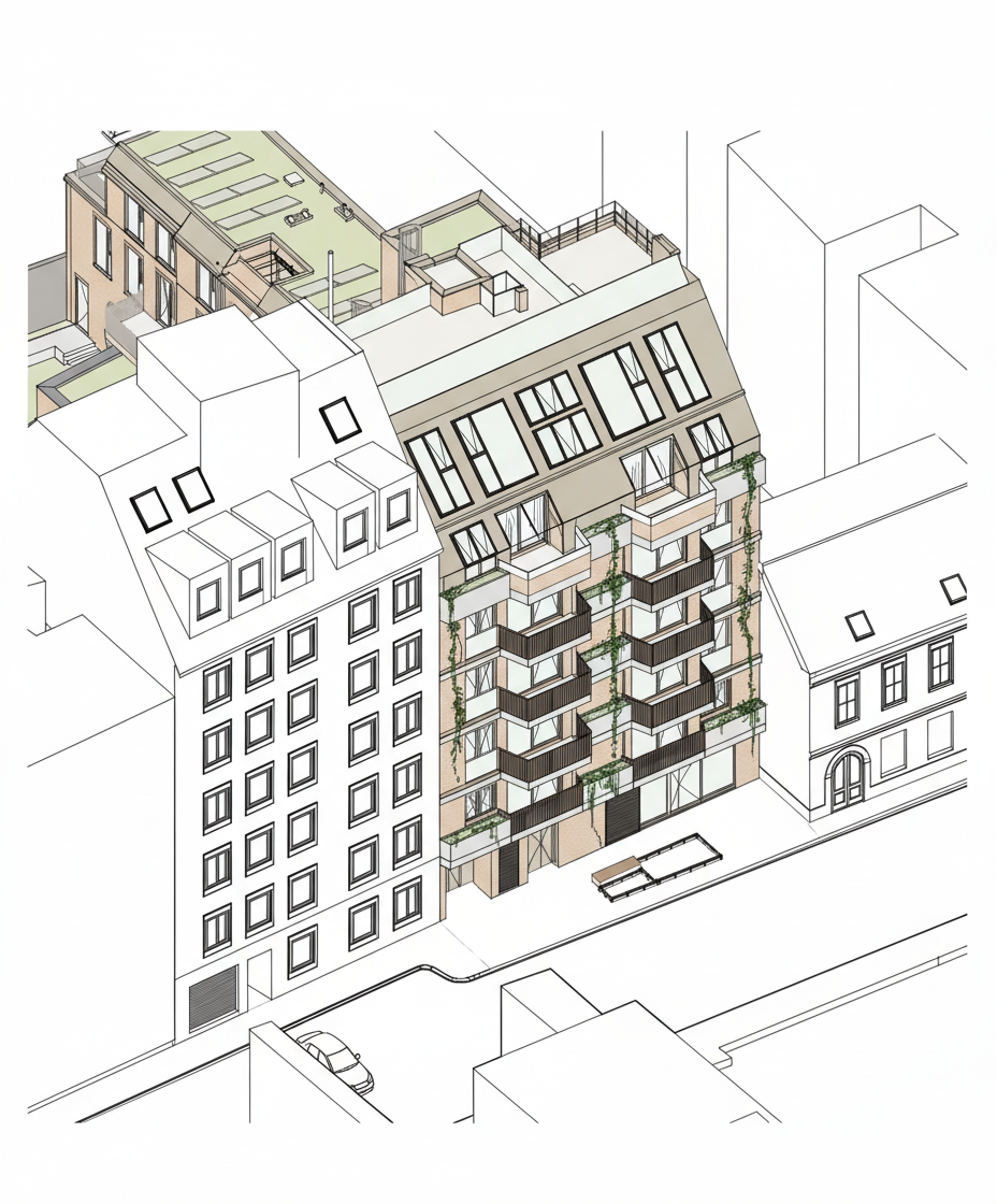 edificio colorato con un rosso chiarissimo quello a destra bianco panna e quella a sinistra giallino