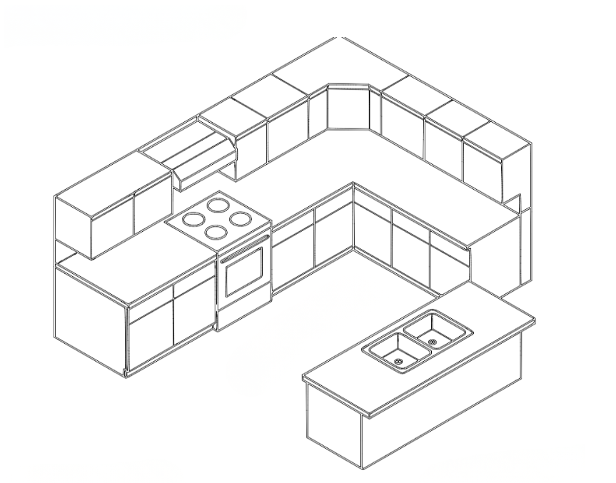 interior shot photorealistic interior render generated directly from the imported cad drawing preserve all geometry exactly as drawn do not move walls cabinets island or appliances interpret the cad literally and convert it into a realistic kitchen interior no redesign no reconfiguration no added or removed elements