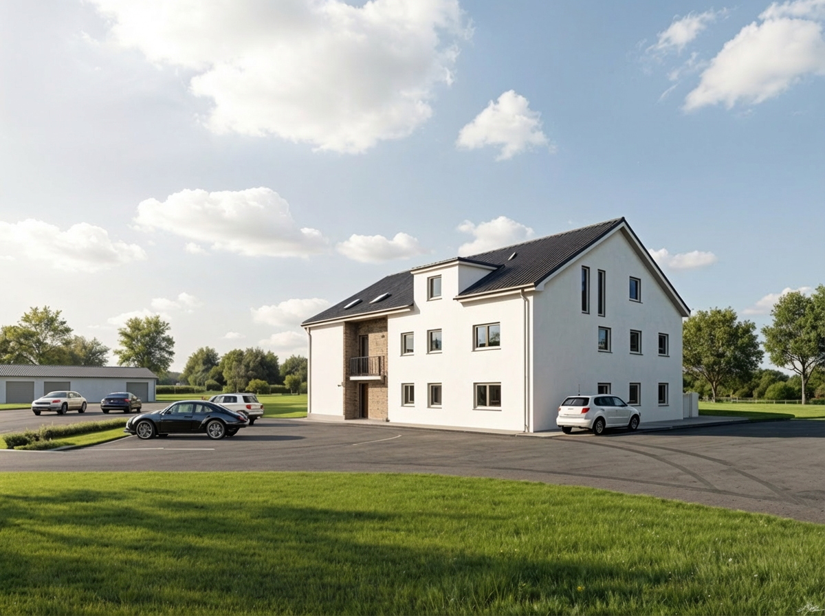 dont alter or move anything in the image populate this space with people moving in and out of the building make the trees look more realistic and the outside of the building a dark bark material which looks real and make the terrain more realistic of the highlands all figures should be on the bridge add a forest at each end of the bridge so u cant see there end ensure the entrance shape is kept