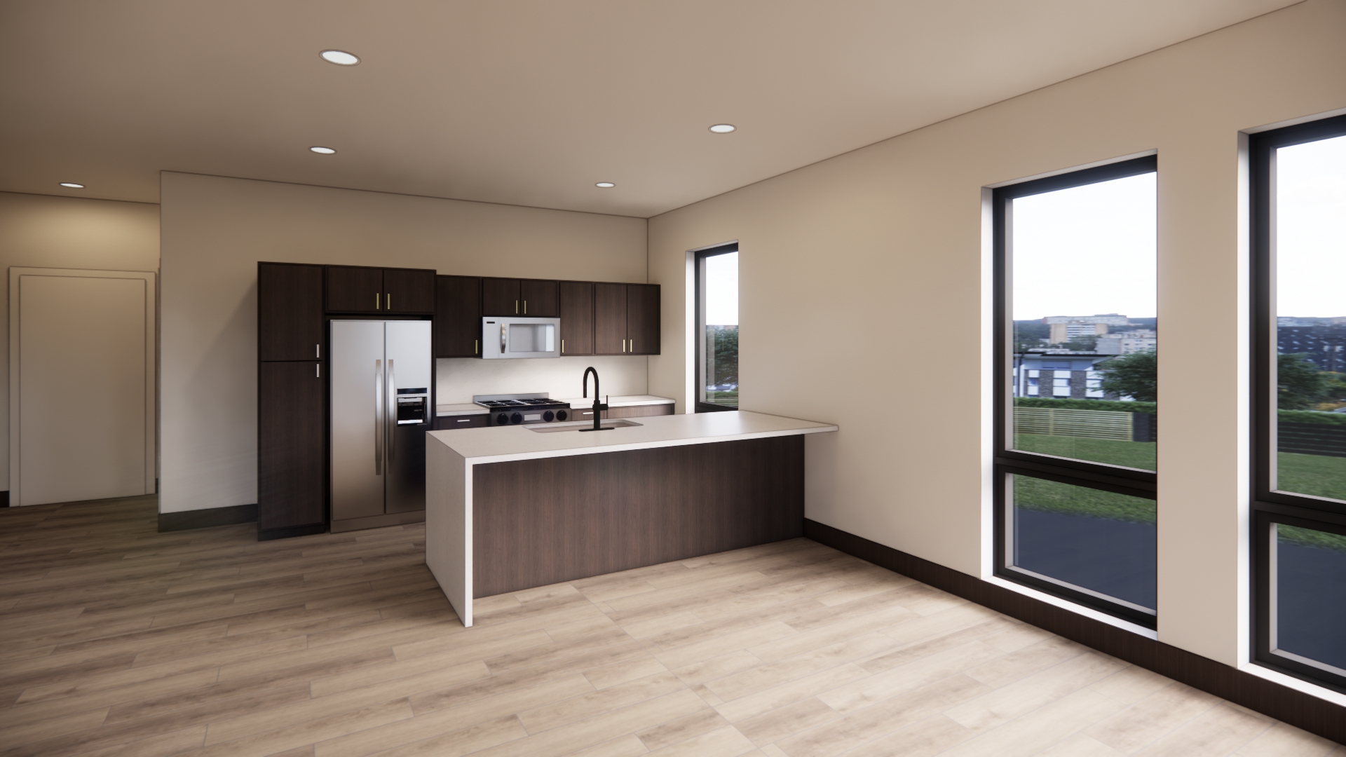 no cinematic lighitng avoid golden hour soft overhead lighting only make the backsplash between the upper and lower cabinets a small veined white marble
