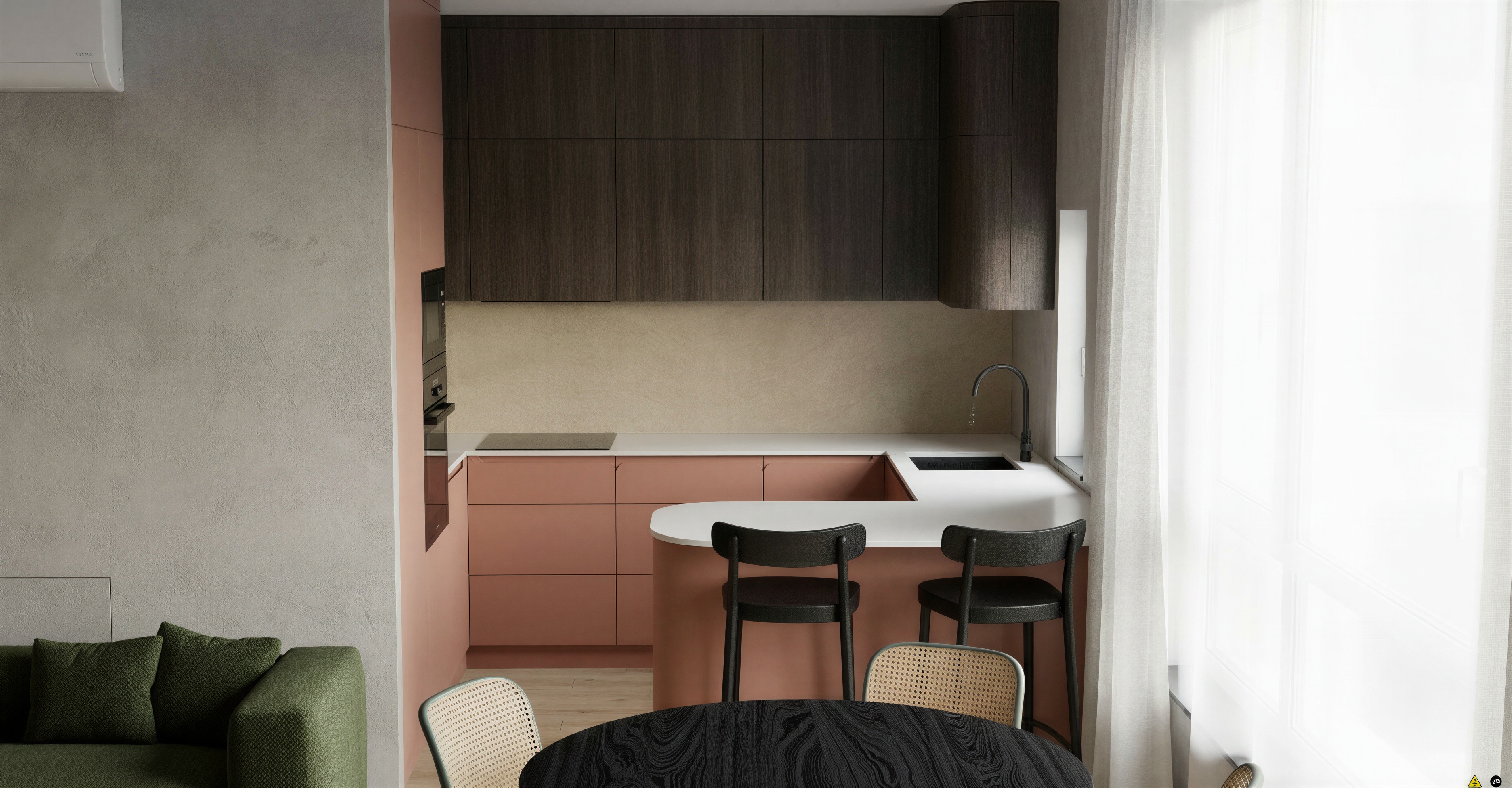 add sunlight make outside view overexposed add black oak texture to the bar stools add black oak texture to the table top make it look very realistic