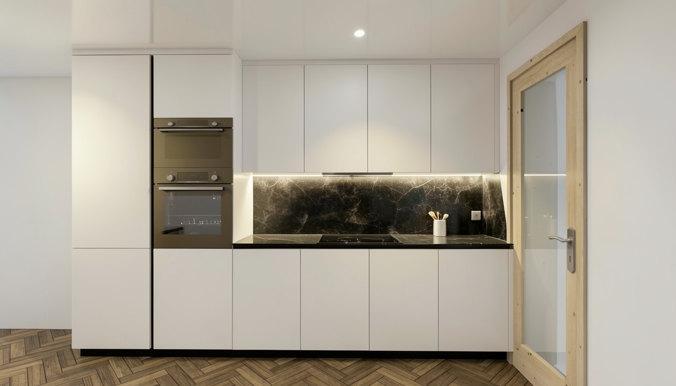 modern minimalist kitchen very nice soft white color black marble counter top led light night ambient