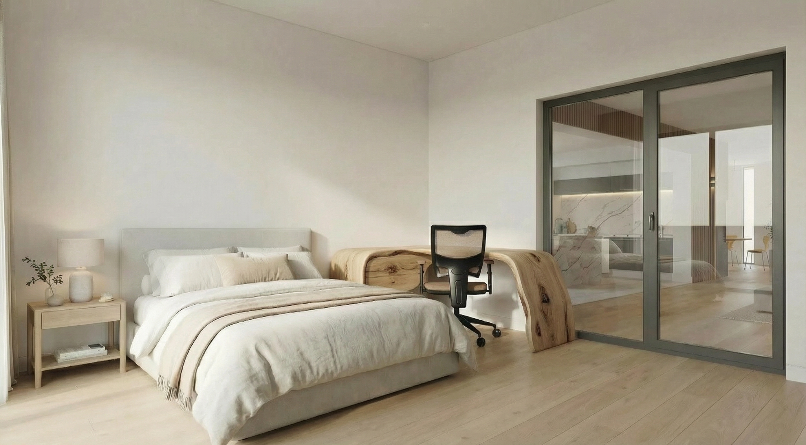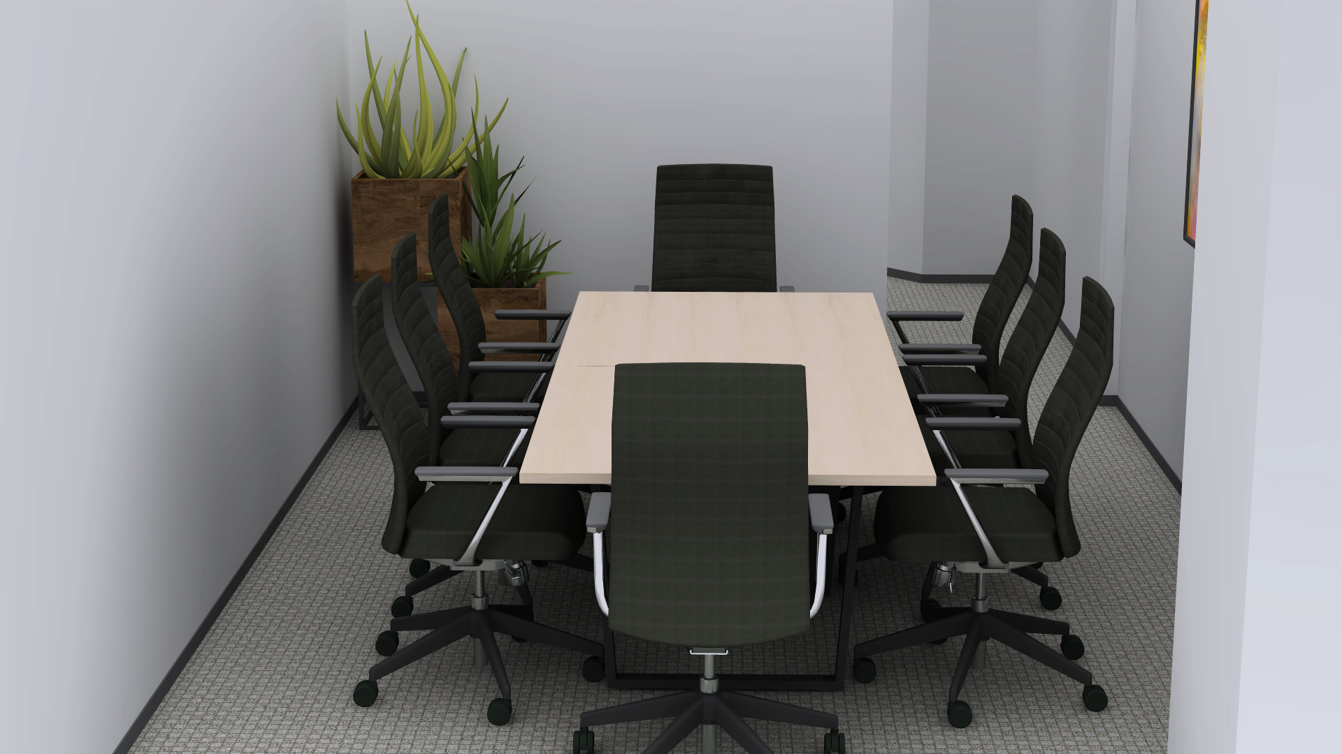 add computer and decor on the desk keep furniture the same make the room brighter keep the table the same color no light shadows keep everything the same color keep the chairs the exact same