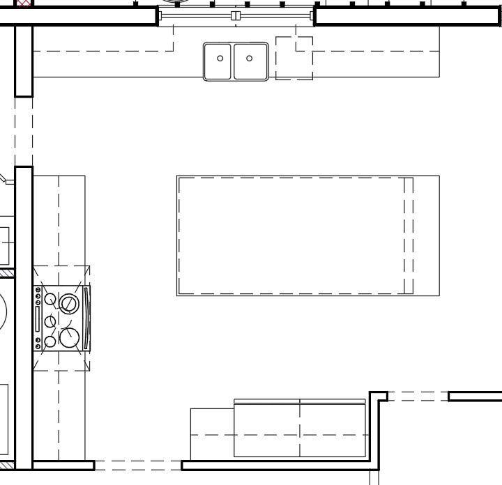based on the floor plan attached make a neoclassical modern design of a kitchen with taj mahal counter tops white cabinets with gold fixtures porcelain white sink with gold fixtures and white oak hardwood flooring
