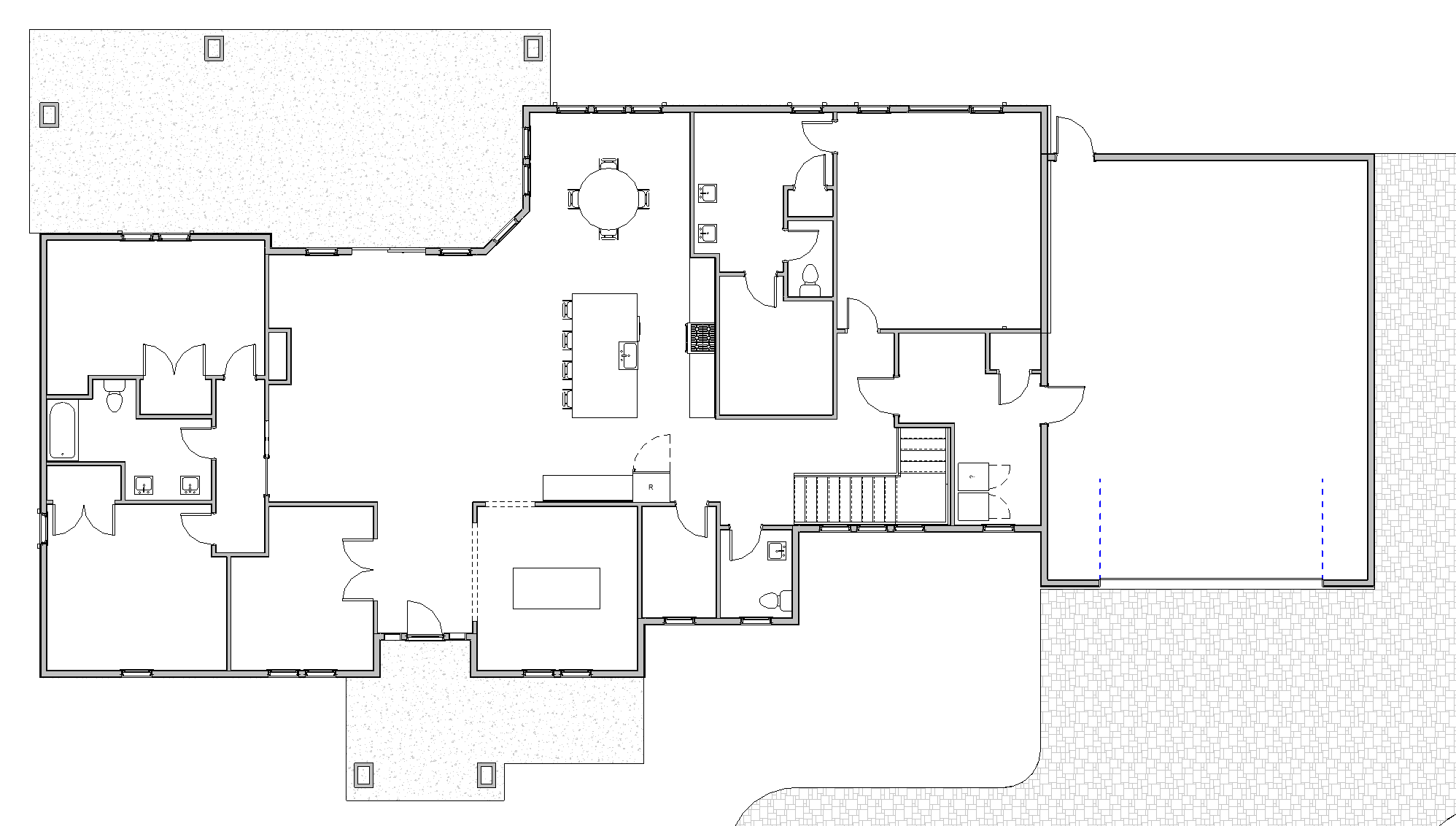 convert this floor plan into a realistic isometric 3d view of a full house show the space from an elevated angle with furniture walls and details visible home with two baseball boy bedrooms on the left side great room in center with stone fire place and grey sectional couch white countertops office near front door on left dining room near front door on the right master bedroom on upper right wood 8 walnut floors carpet in bedrooms white trim windows warm grey walls 8 white base trim use the same furniture as shows on the plan do not change the orientation of the floorplan