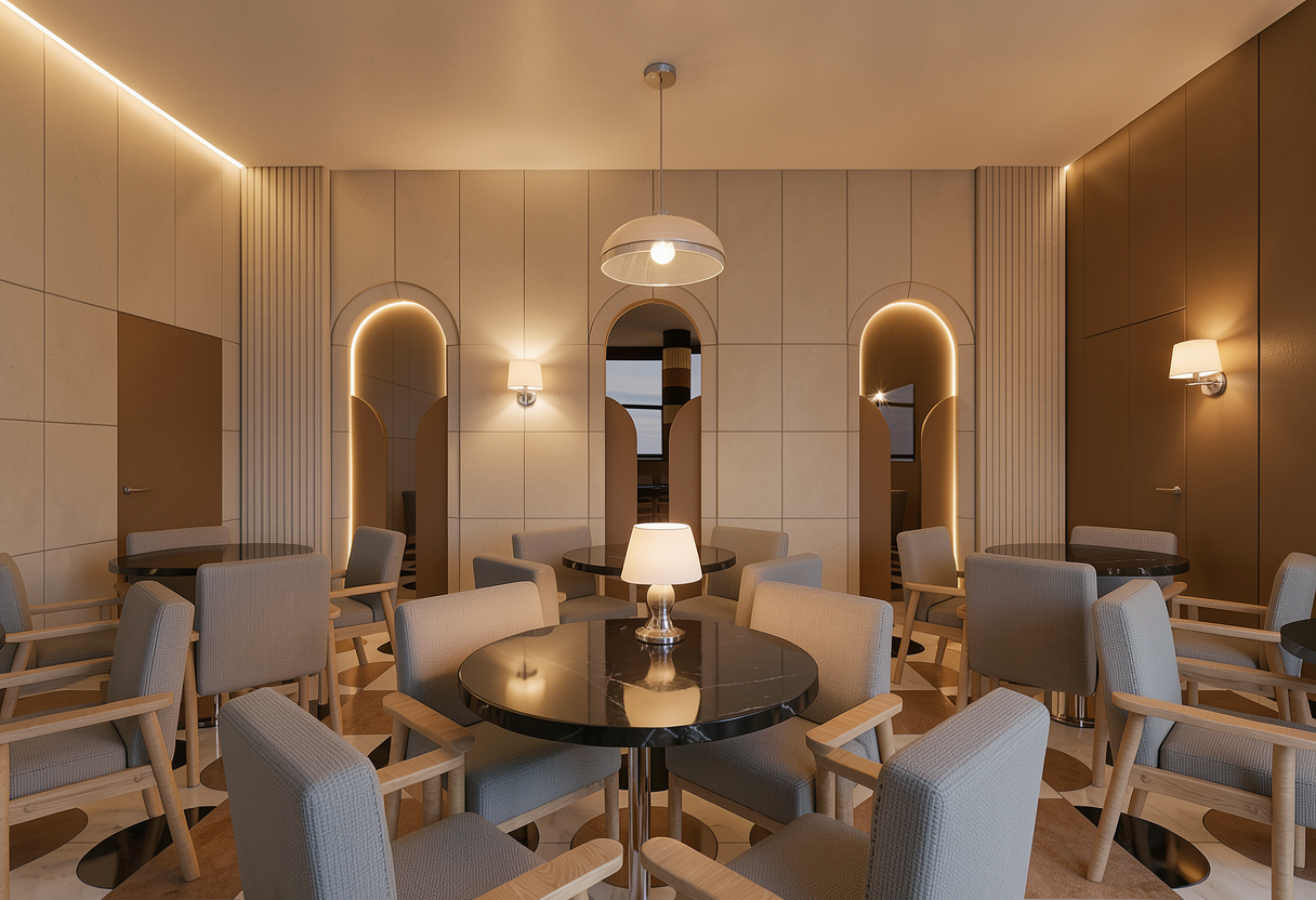 make each home connect to the one beside it add elderly couples walking on the walkway add elderly people sitting on the patios add elderly people in wheel chairs