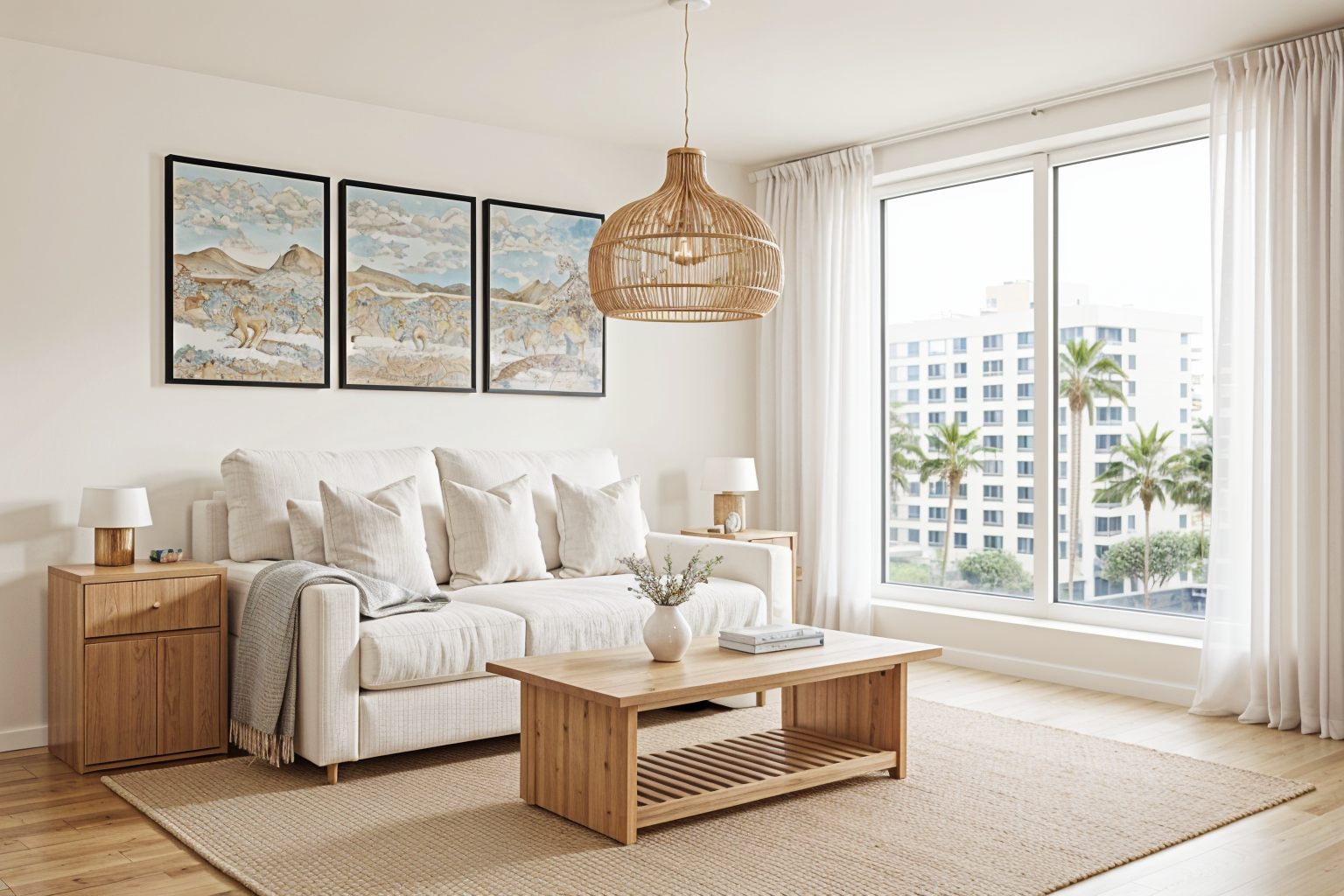 modernist interior shot create a photorelalistic image of this modern living room with sky views architecture