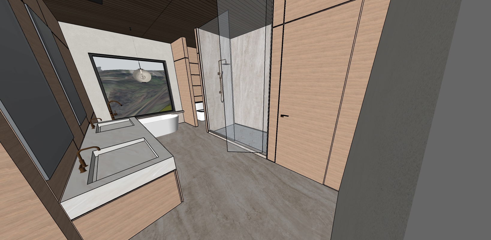 make this render look realistic and dont add any objects in the scene except for a forest outside the window