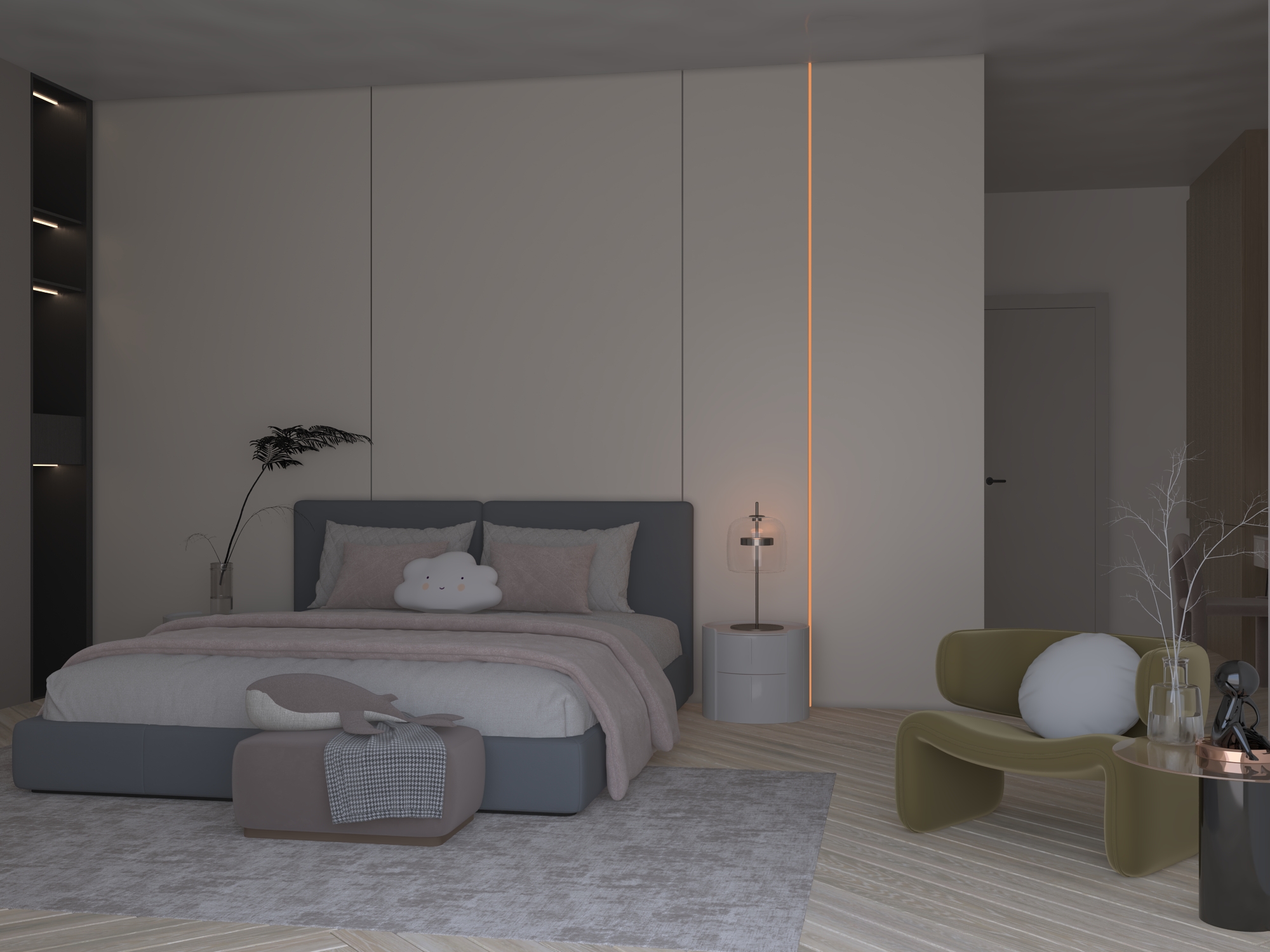 a modern and elegant teenage girl s bedroom with a minimalist design in soft pink and white tones clean lines cozy atmosphere and stylish furniture add natural daylight streaming through the window warm ambient lighting and smooth materials subtle decorations pastel color palette and soft fabrics ultra realistic textures cinematic lighting and detailed reflections high resolution ultra realistic ray tracing 8k soft global illumination photo realistic render perfect composition depth of field high quality materials smooth shadows modern aesthetic calm and refined mood use herringbone parquet and use pink colors not only gray