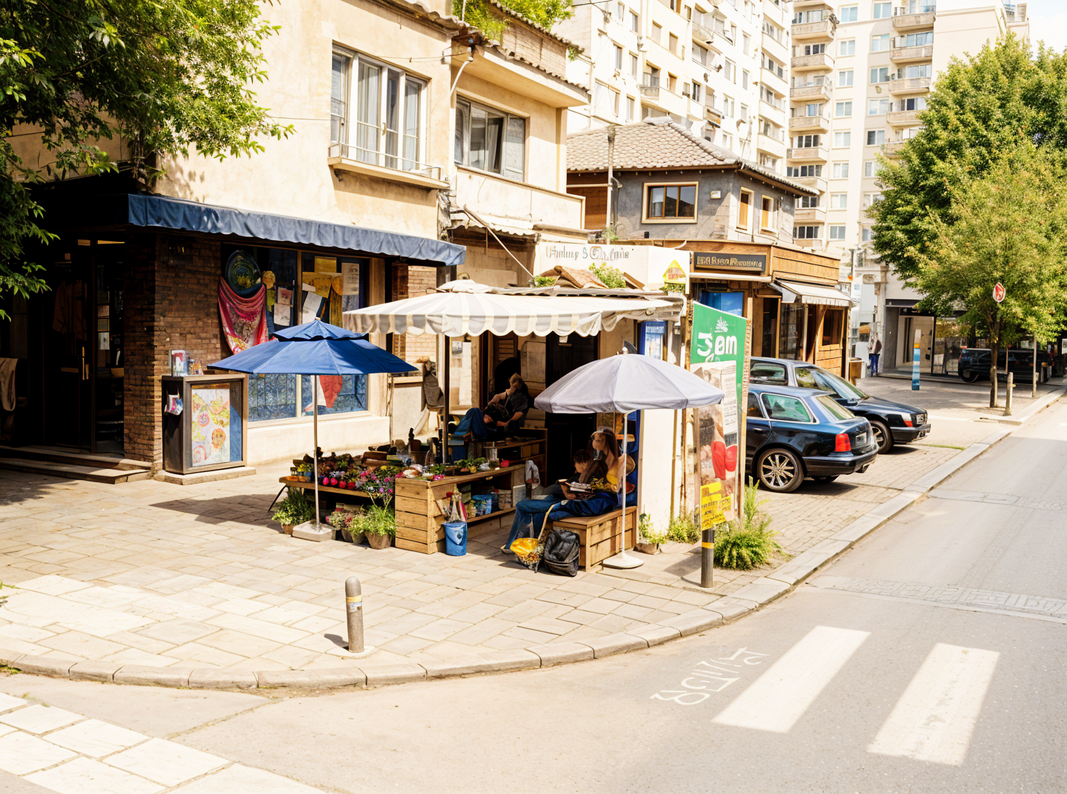 clean up the image remove people pillars and road signs remove the text box in the lower left corner
