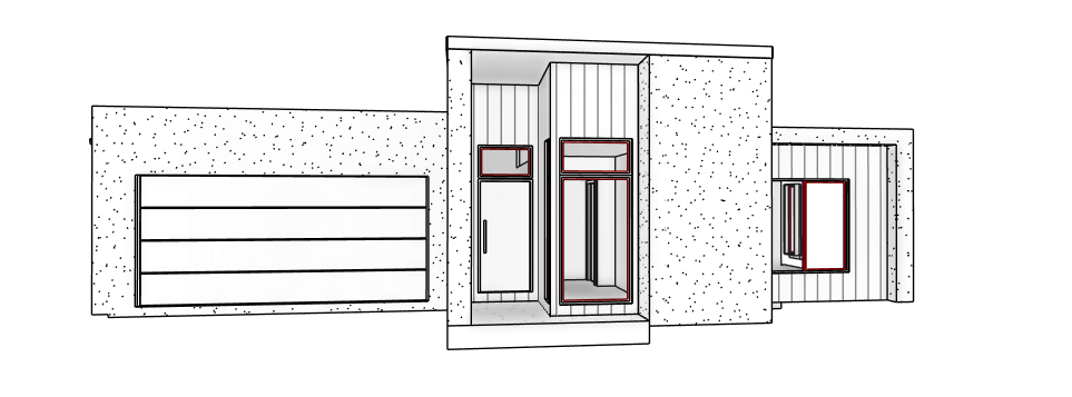 make render light grey vertical cladding to be black along with windows feature timber door