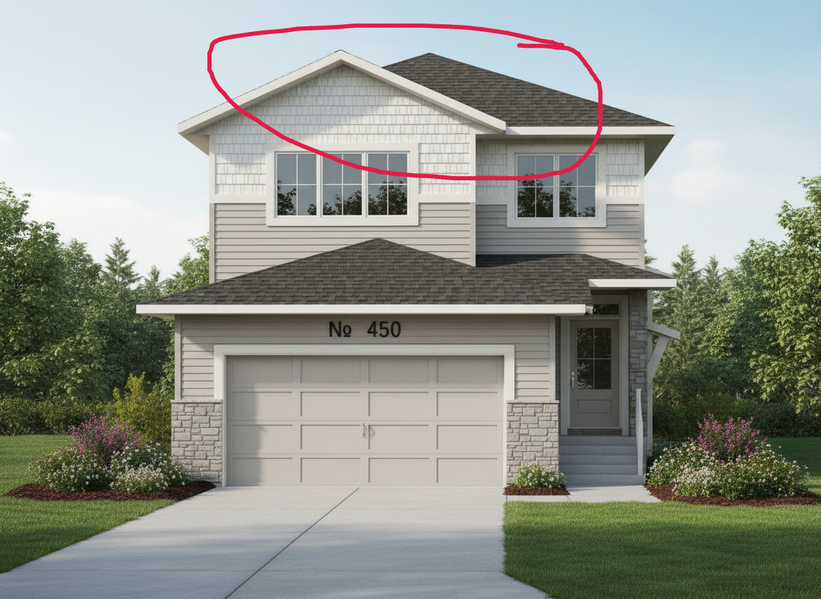 can you please edit the roof to be like that of the reference elevation i circled the error in red for you