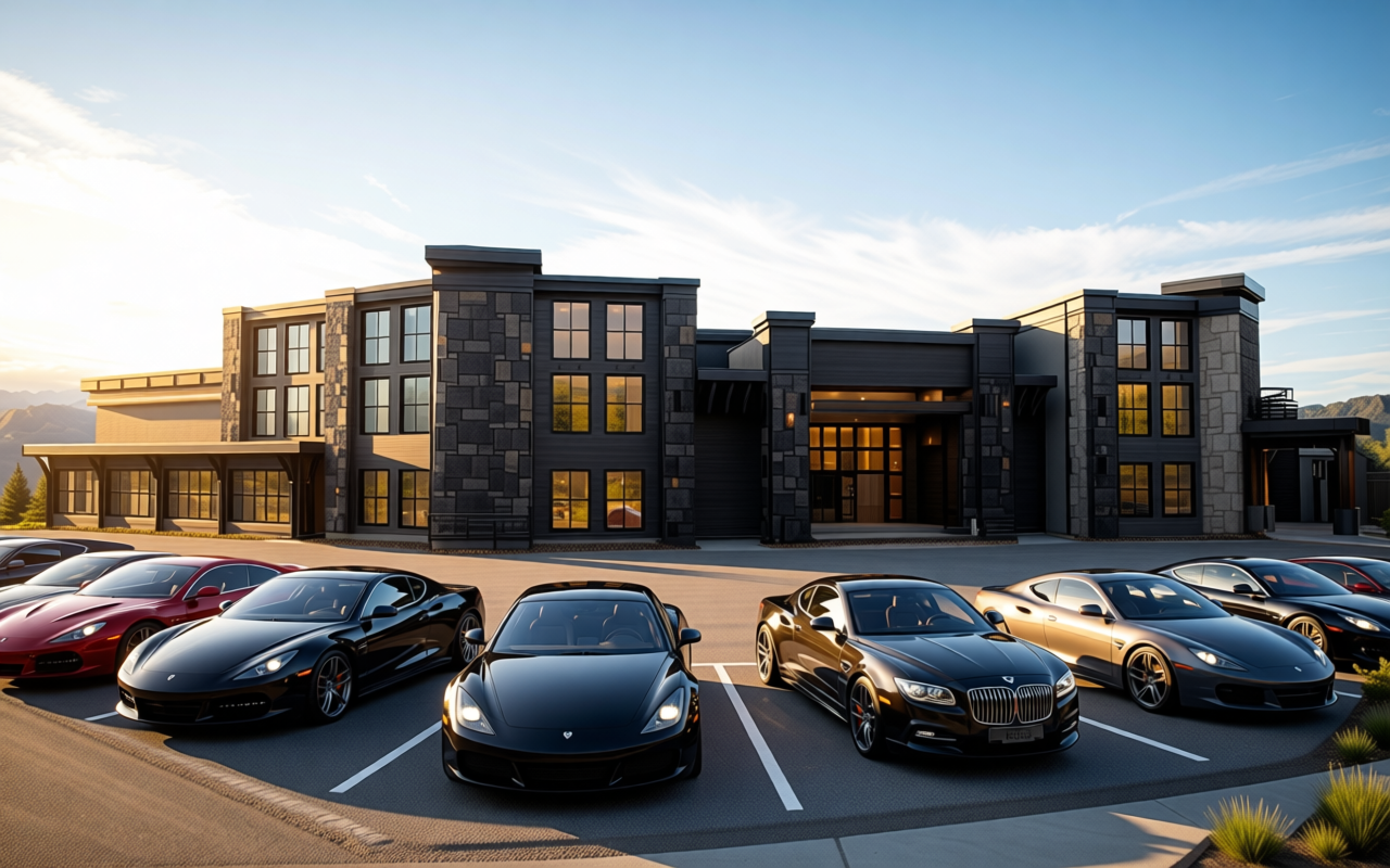 change foreground to a nicer looking parking lot with a couple islands with small trees