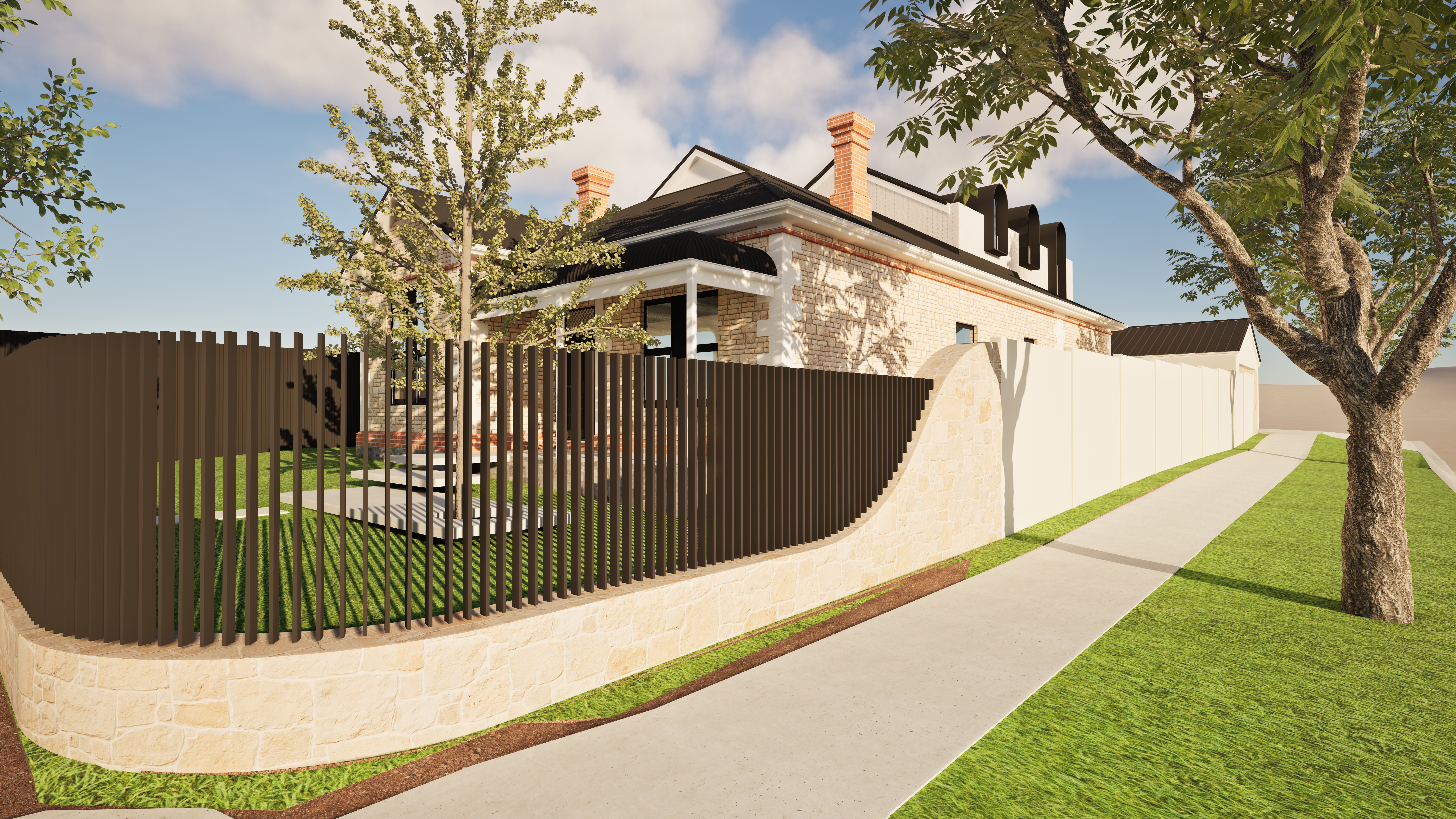 keep materials shapes and geometry the same as original image enhance materials and add extra grassy vegetation and trees