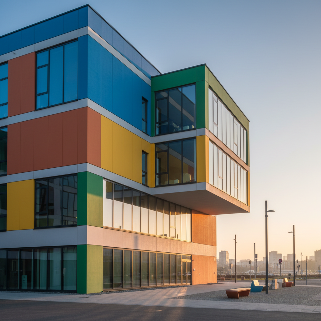 front view of a clean mountain modern home architectural exterior rendered in cinematic vibrant day time lighting beautiful blue skies with sparse clouds sun shining on the house with faint streaks of light warm vertical wood siding with similar simple minimal grain pattern black roof visible prominent snowy colorado mountain range landscape in the background natural wood textures high fidelity photorealistic visualization crisp shadow falloff refined fa ade geometry richly detailed grain patterns soft atmospheric depth calm minimal landscaping premium architectural photography mood ultra clean composition and materials beautiful manicured gardens with hedges lining the property concrete driveway leading to the glass garage doors photorealistic rendering