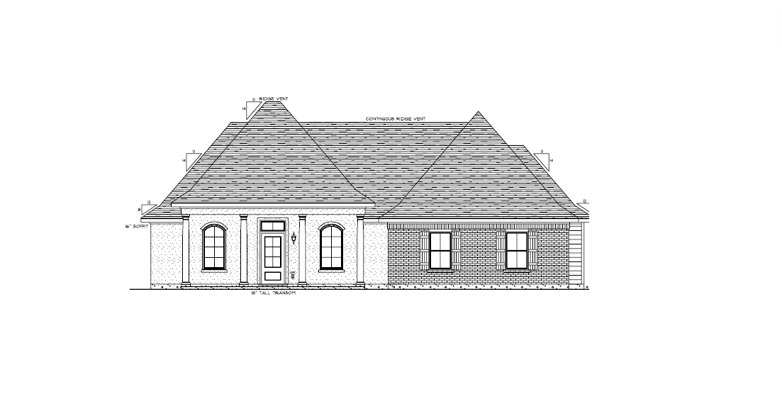 make as photorealistic as possible while keeping textures the same as selection professional landscaping in a lightly wooded scene with good lighting match materials to plan and remove any text black trim windows white painted stucco brown aged brick