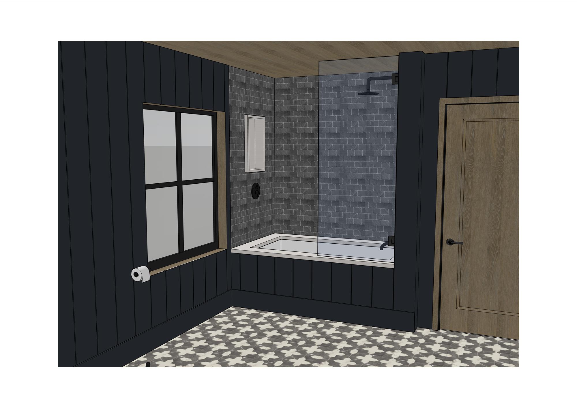 add grey brick pattern tiles to shower walls