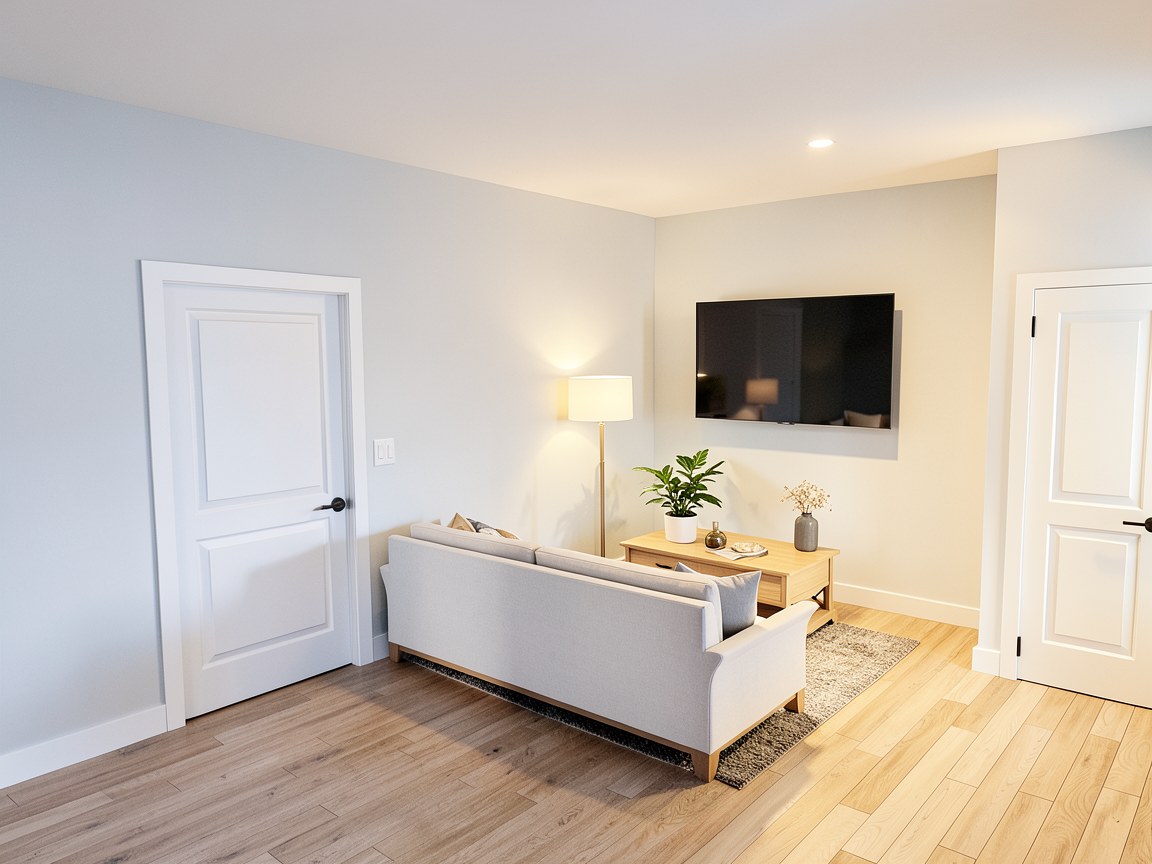 make this lower level living area look better