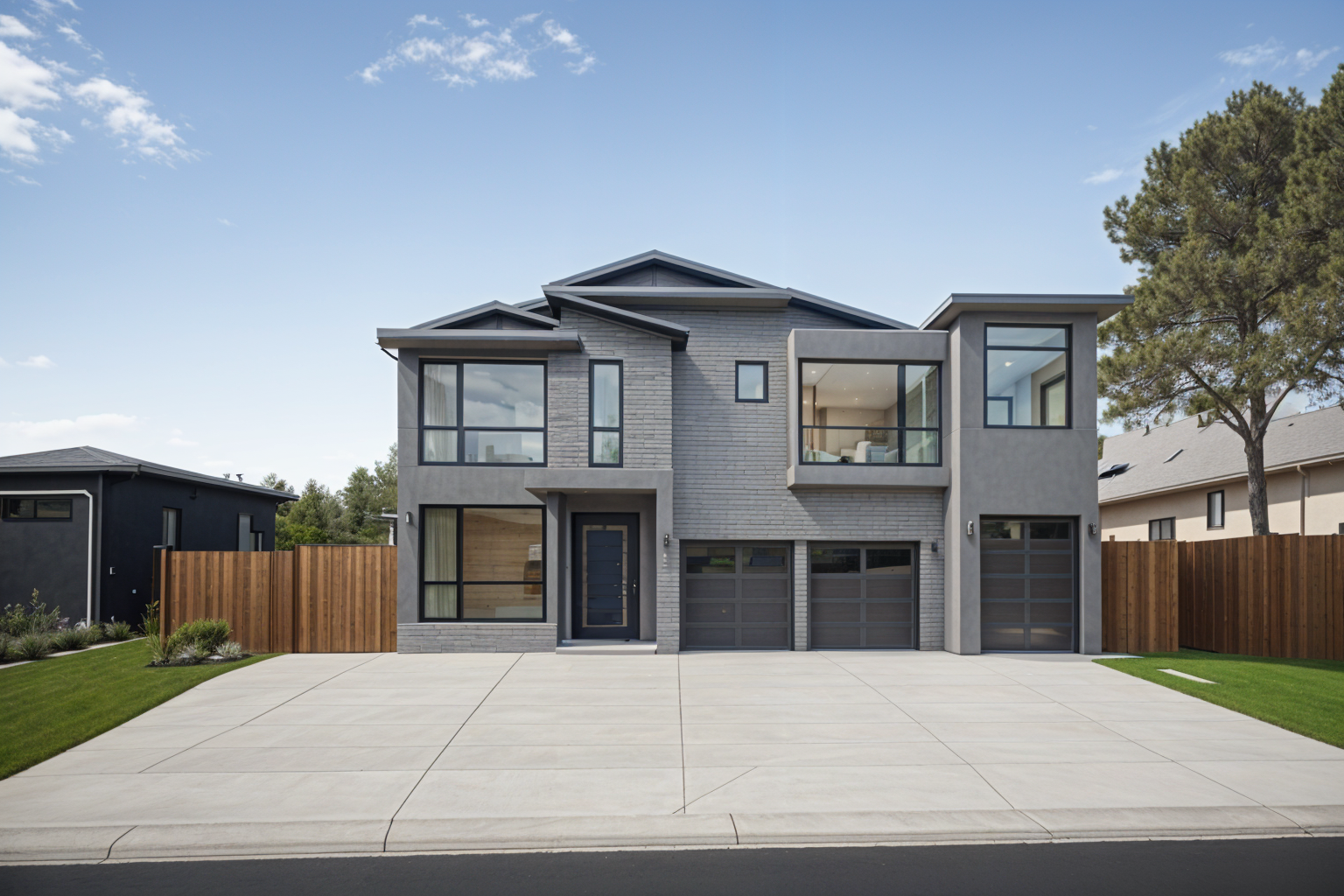 barndominium exterior shot the front exterior view of a modern traditional home architecture