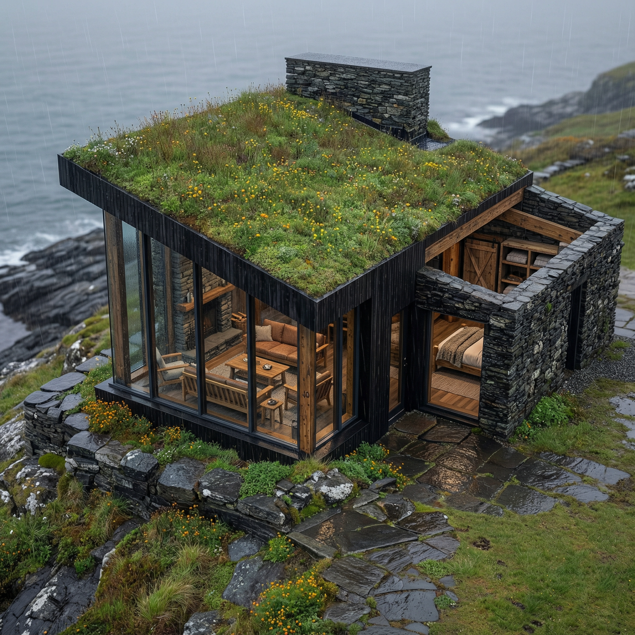 top down elevation cut just below the roofline showing off the interior of the structure in the same realistic style but at a much tighter lens