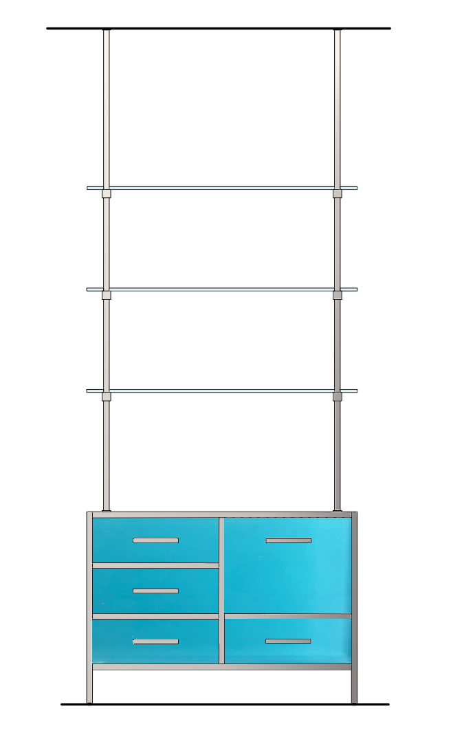 render this cabinet polished nickel and blue laminated glass
