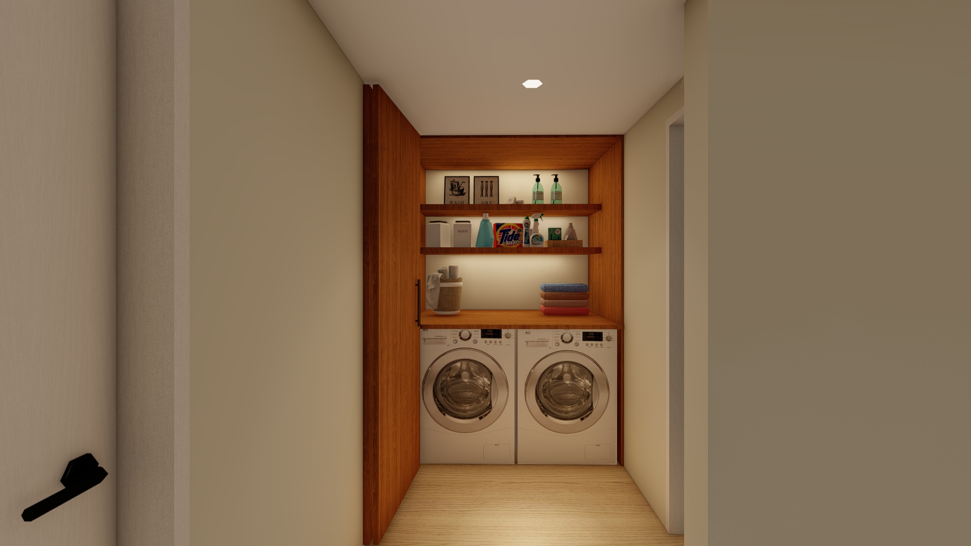 ultra realistic rendering of a modern laundry nook maintain the exact layout proportions camera angle and object placement from the original photo do not modify the architecture d cor or composition enhance realism through accurate materials textures lighting reflections and shadows