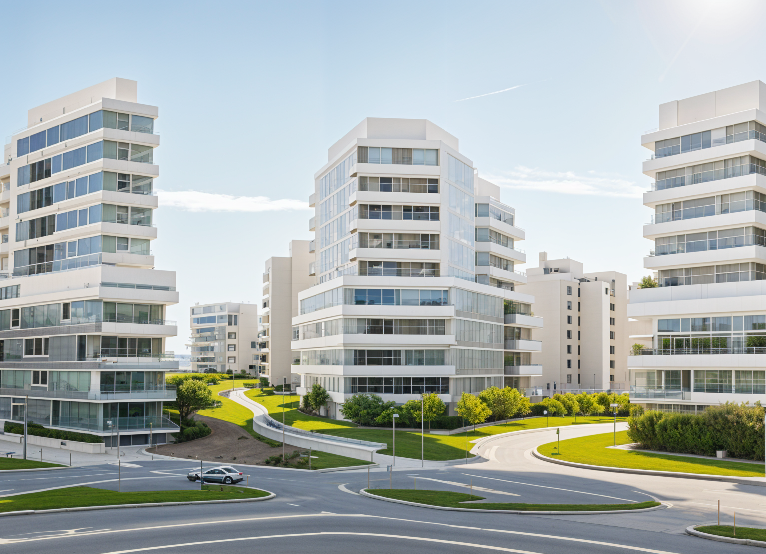 exterior shot green urban space streets with people cars and trees vegetation in sidewalk commercial ground floor with transparent fa ade people coffee tables with people sitting in the ground floor and street next to it balconies with greenery perspective render