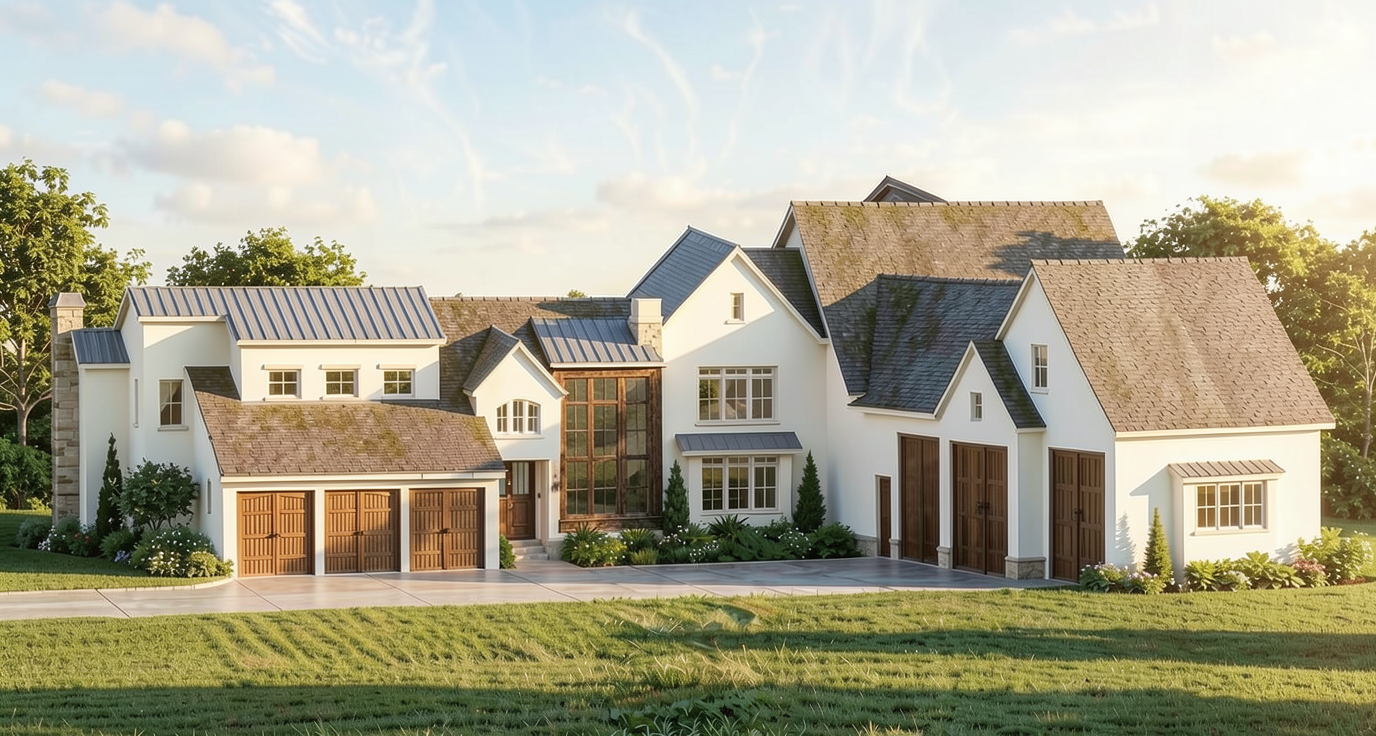 apply a light natural stone material to the upper front gable section only the section with the bay window start at the peak of the gable and continue down to just above the horizontal trim line above the lower windows stop the stone exactly at the vertical corner where the wall angles outward do not wrap the stone onto the angled or adjacent walls keep all other siding materials unchanged maintain existing window trim and proportions