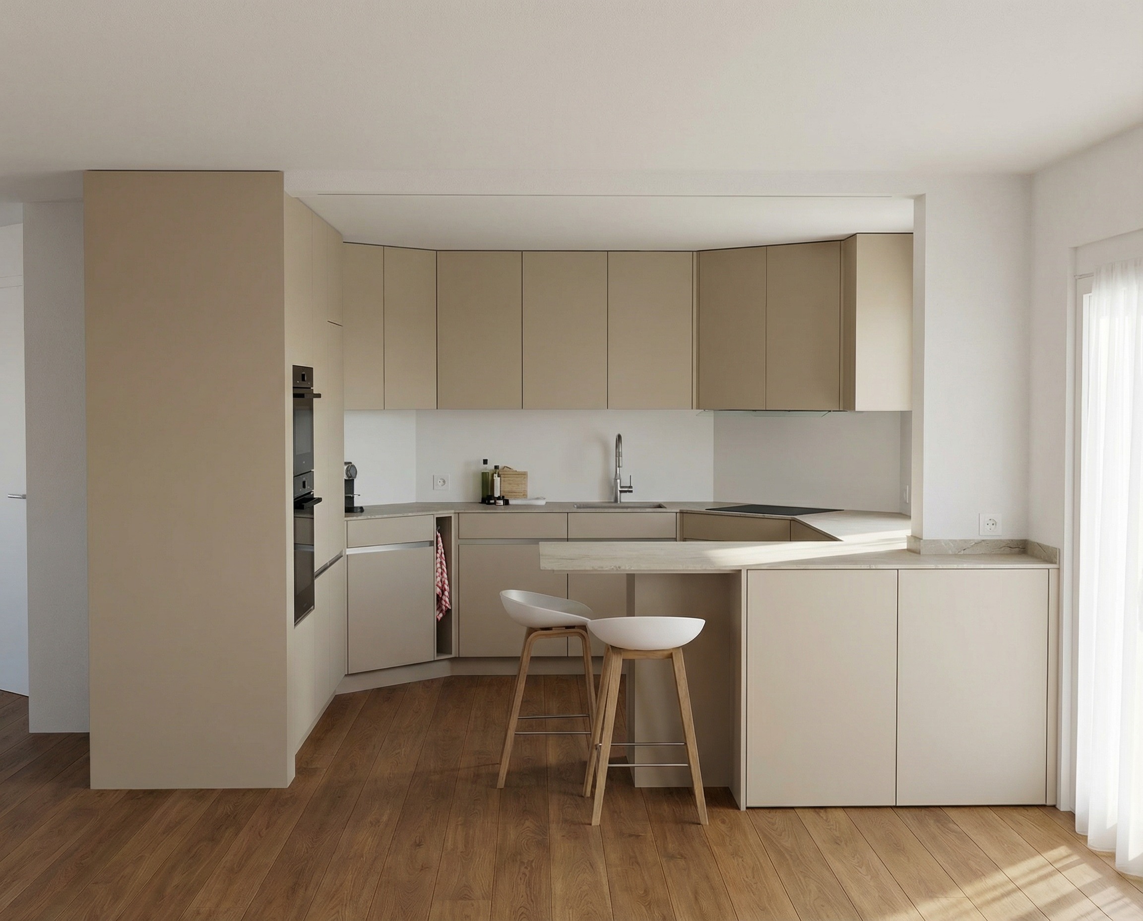 extend the adjacent white wall surface seamlessly across the selected area flat architectural interior wall matching the existing wall material uniform matte white plaster or painted wall finish continuous wall plane from floor to ceiling preserve the original lighting and shadows maintain exact geometry without adding new design details