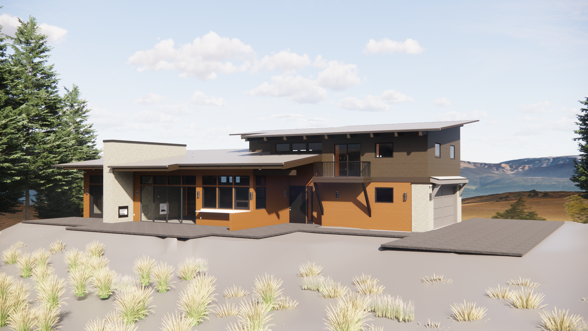a modern timber clad exterior rendered with cinematic daylight photography crisp photorealistic materials soft global illumination subtle shadows clean fa ade detailing controlled contrast calm oregon coast atmospheric depth shown surrounded by coastal environment land wide frame composition