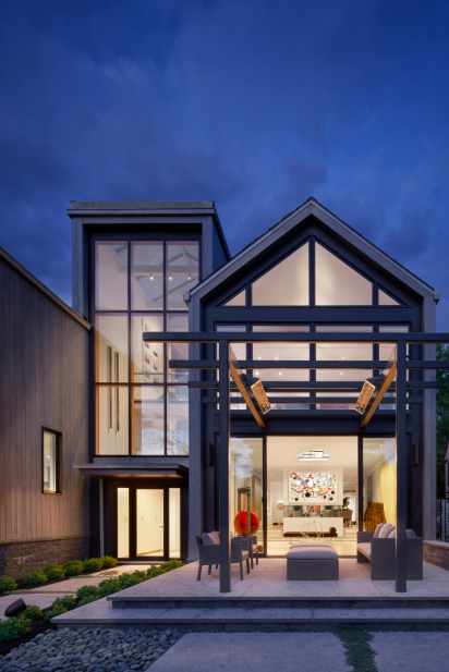 exterior shot add landscaping and exterior lighting in suburbs