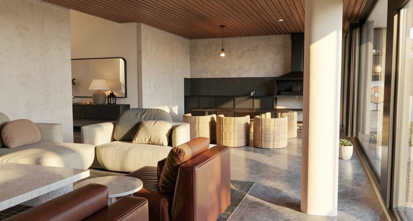 flooring to be 24 x24 calacatta statuario polished tiling makwe sure the cabinets have a huigh glossy finish render countertops and full height backsplash going all the way up the walls and around the window countertop color to be vadara lava plain quartz please maintain original structure